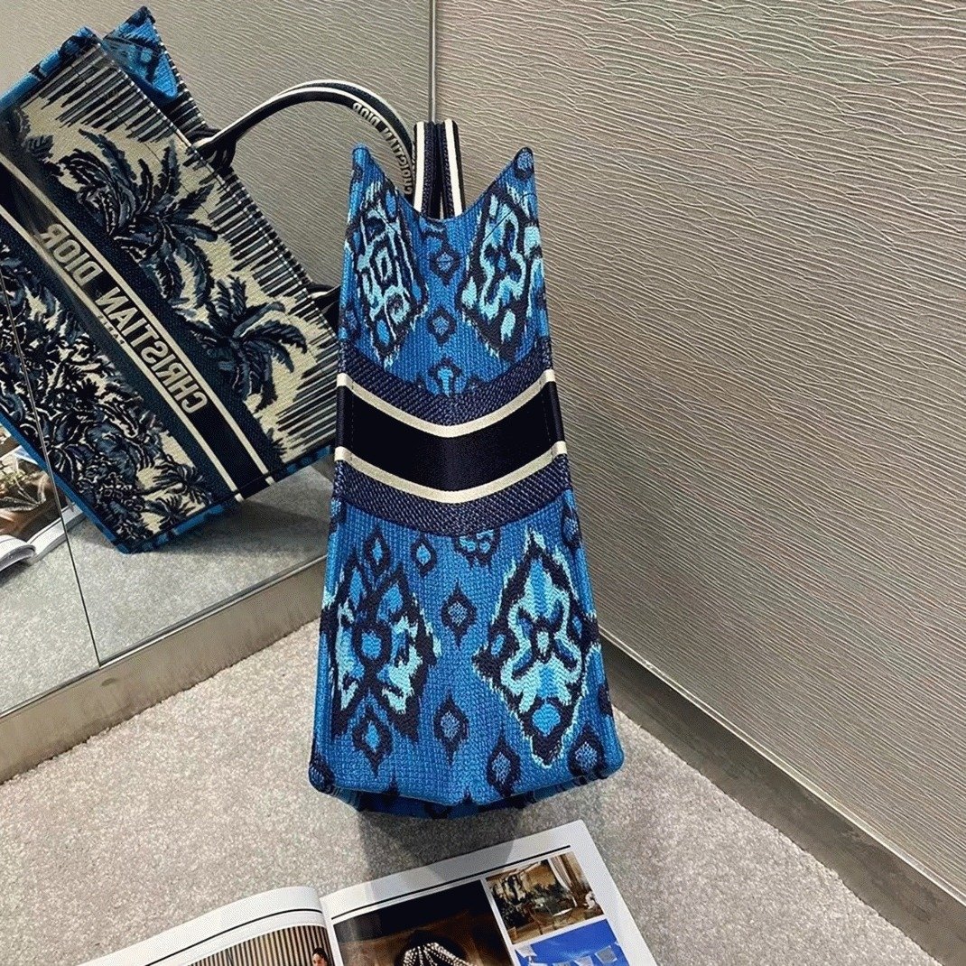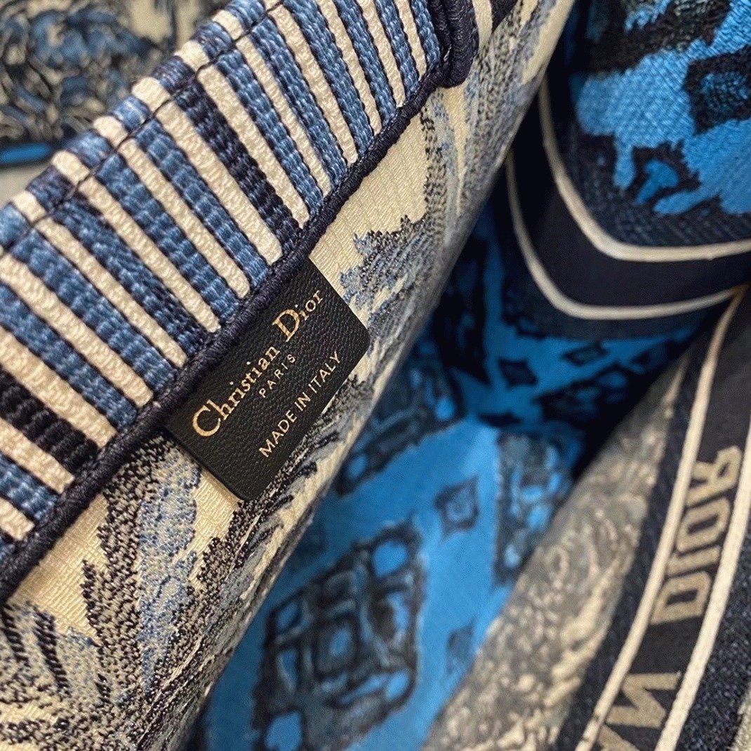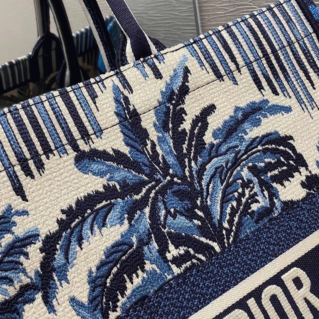Dior Large Book Tote Bag Replica in Blue Dior Palms Embroidery