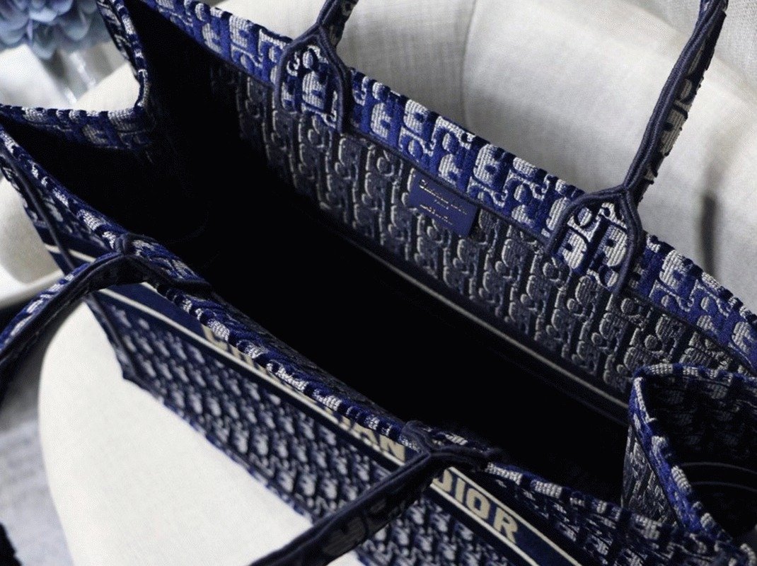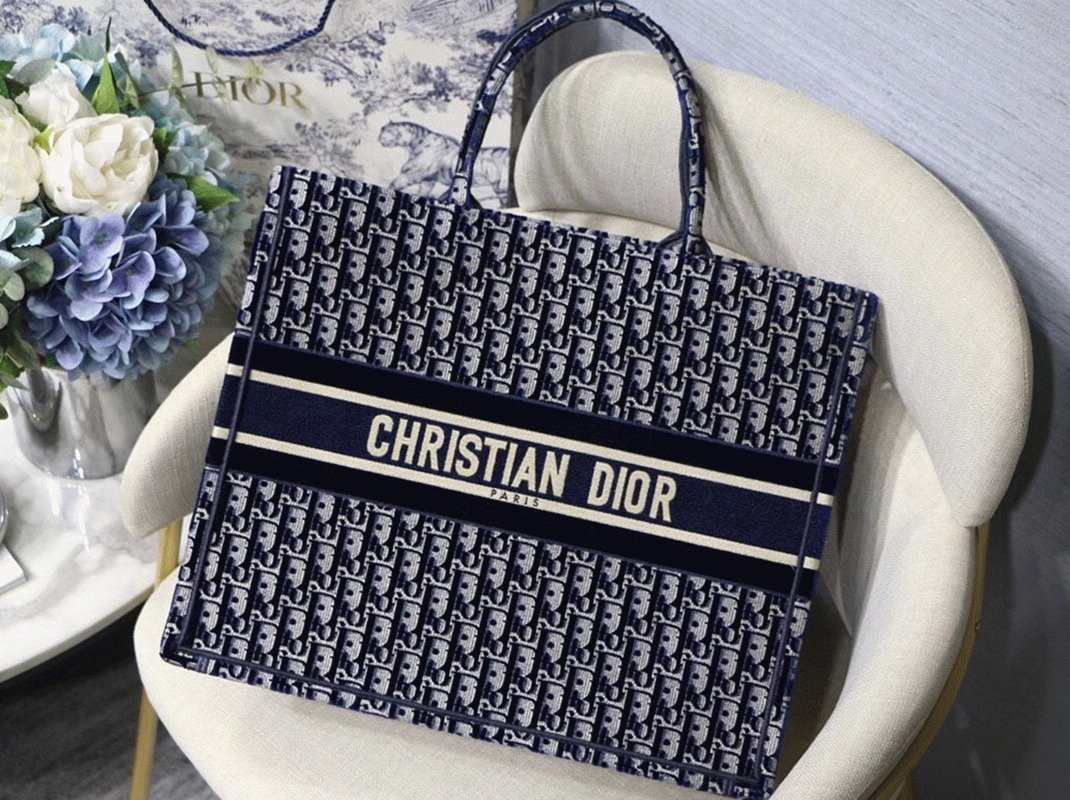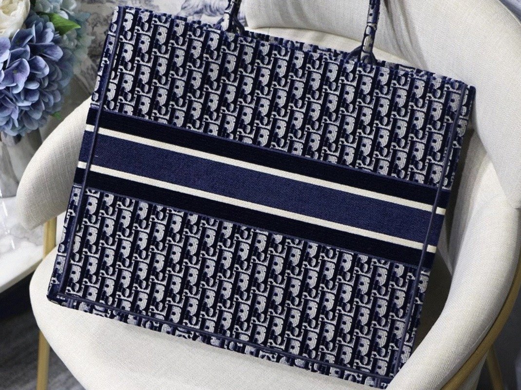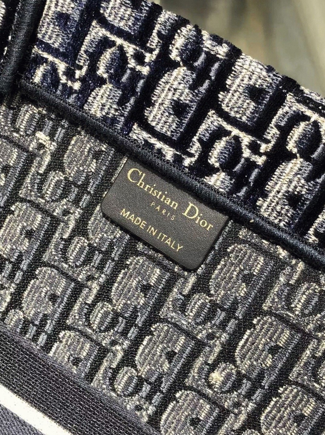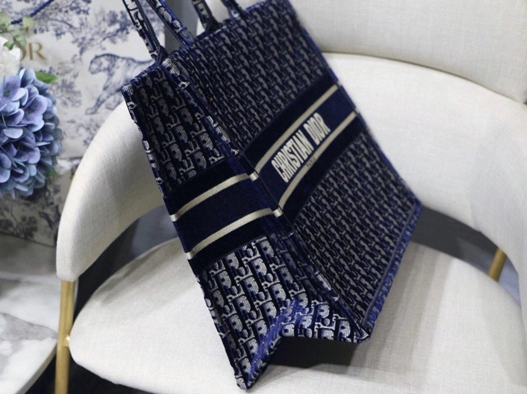 Dior Large Book Tote Bag Replica in Blue Oblique Embroidered Velvet