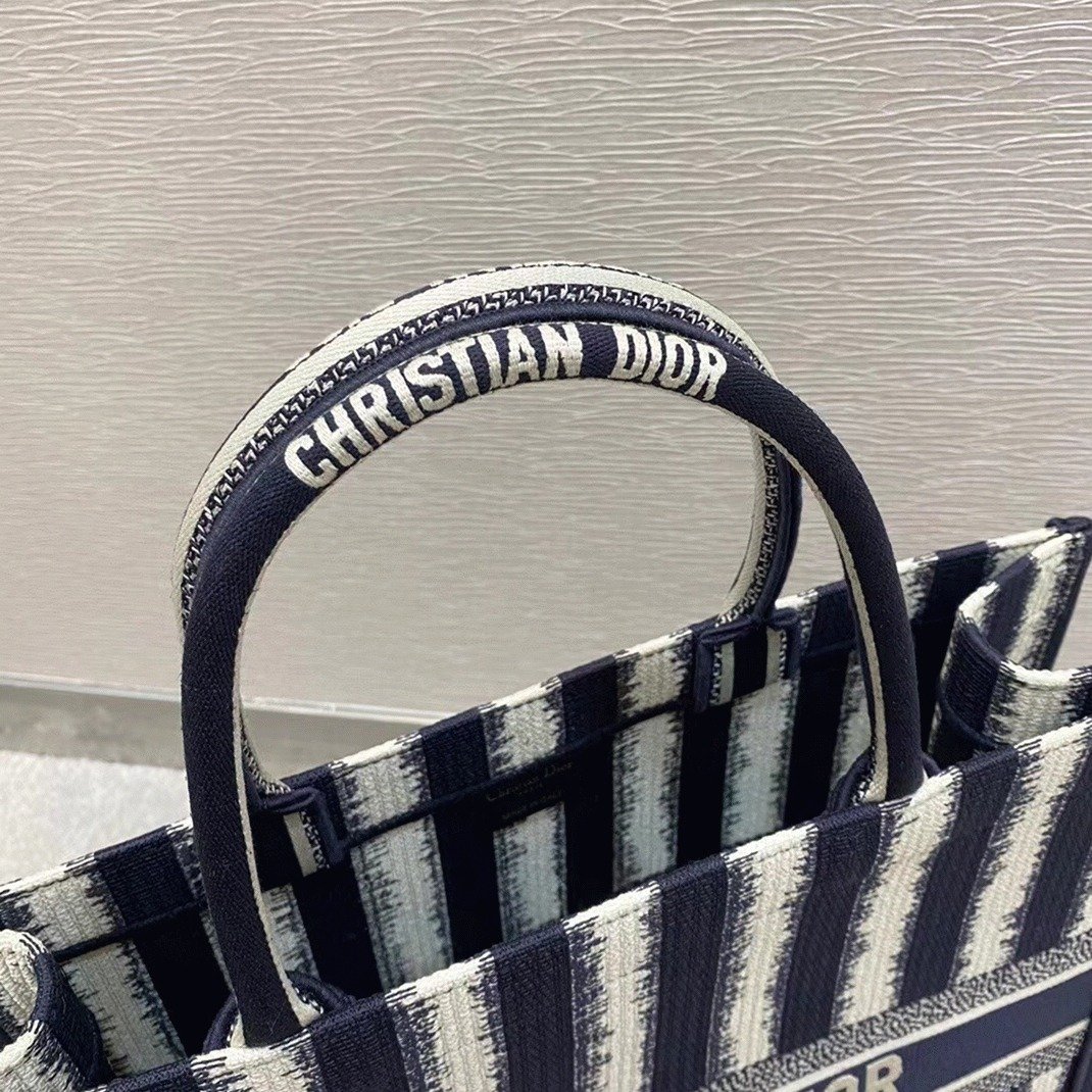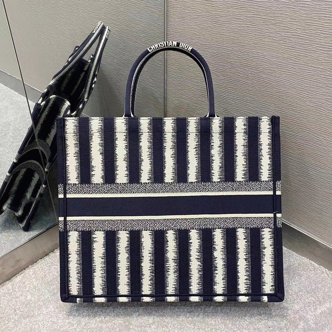 Dior Large Book Tote Bag Replica in Blue Stripes Embroidery