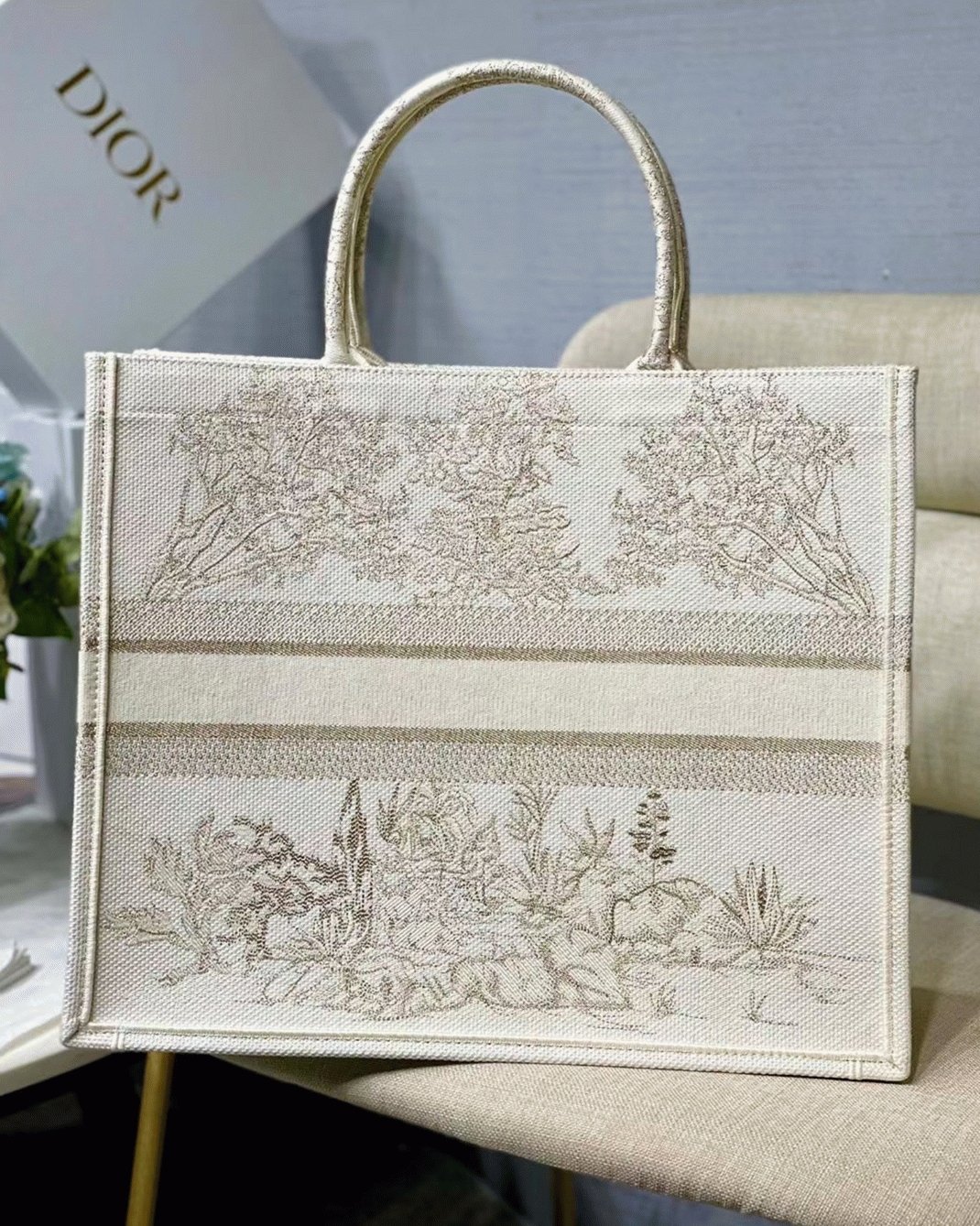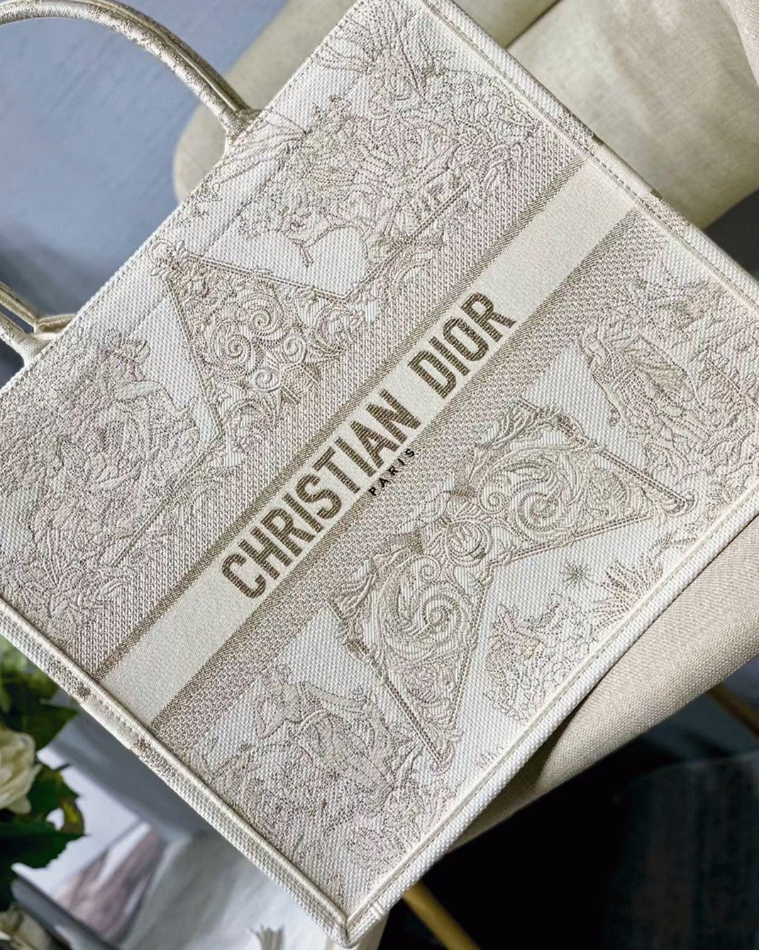 Dior Large Book Tote Bag Replica in Dior Around the World Stella Embroidery