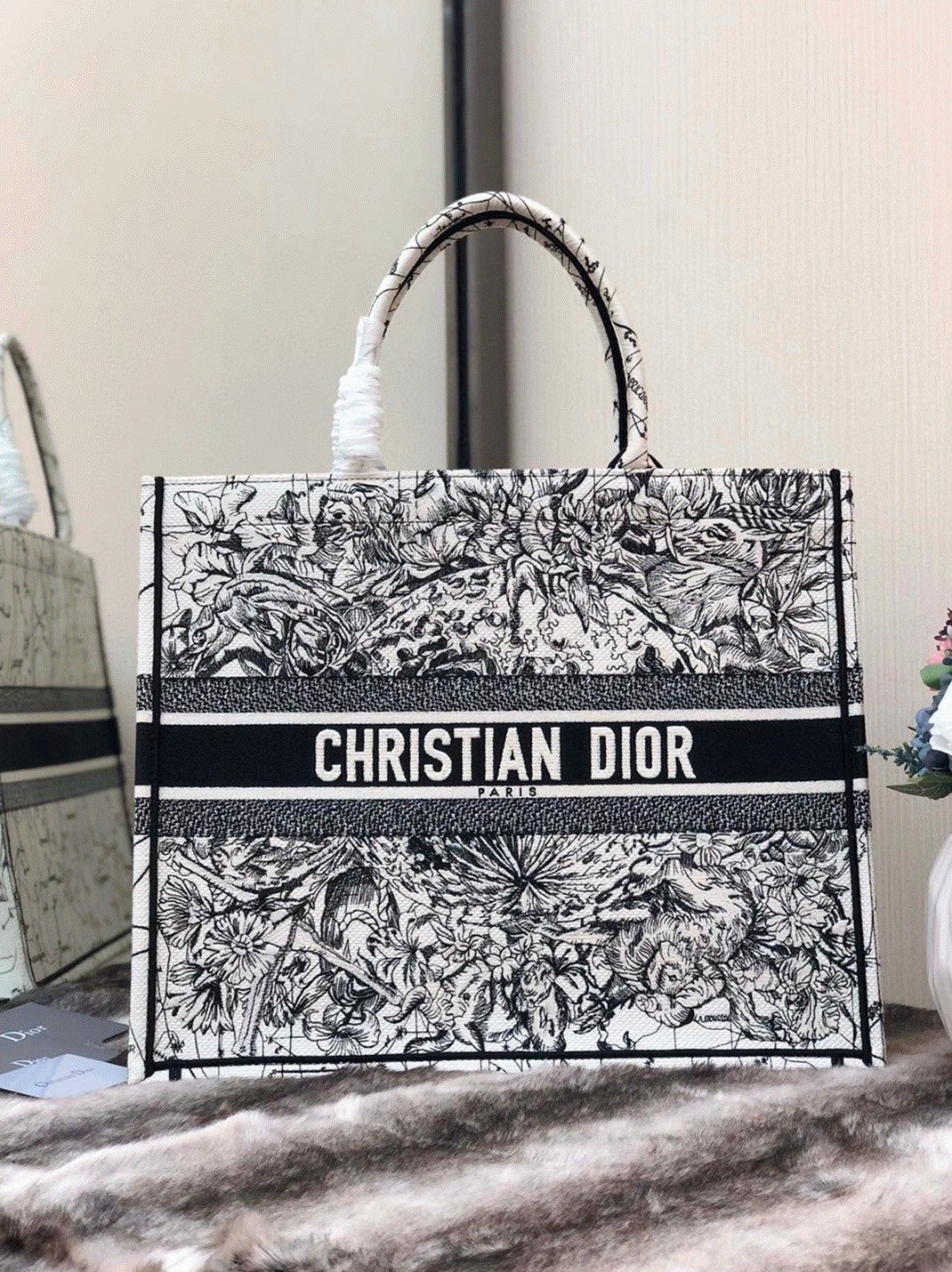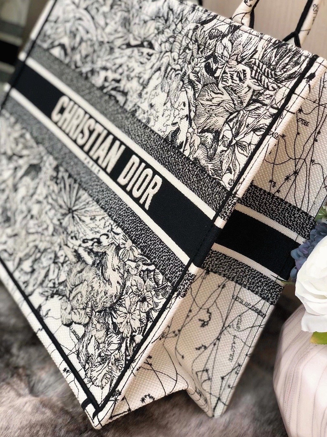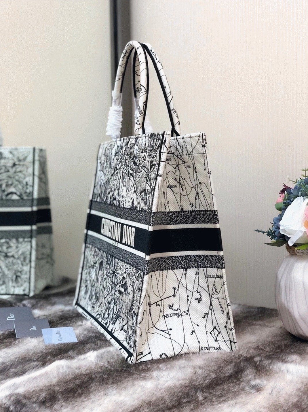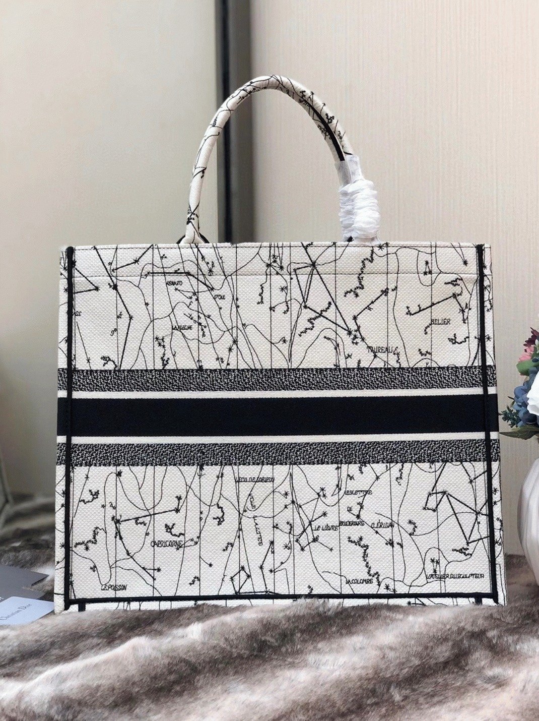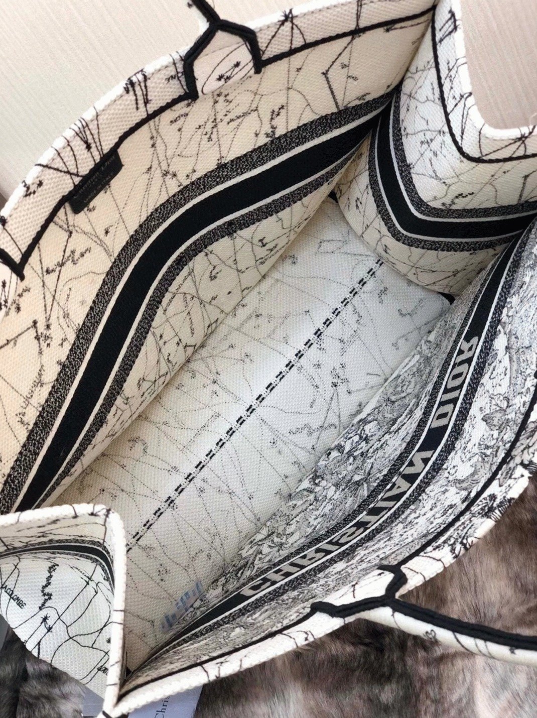 Dior Large Book Tote Bag Replica in Latte Zodiac Embroidery
