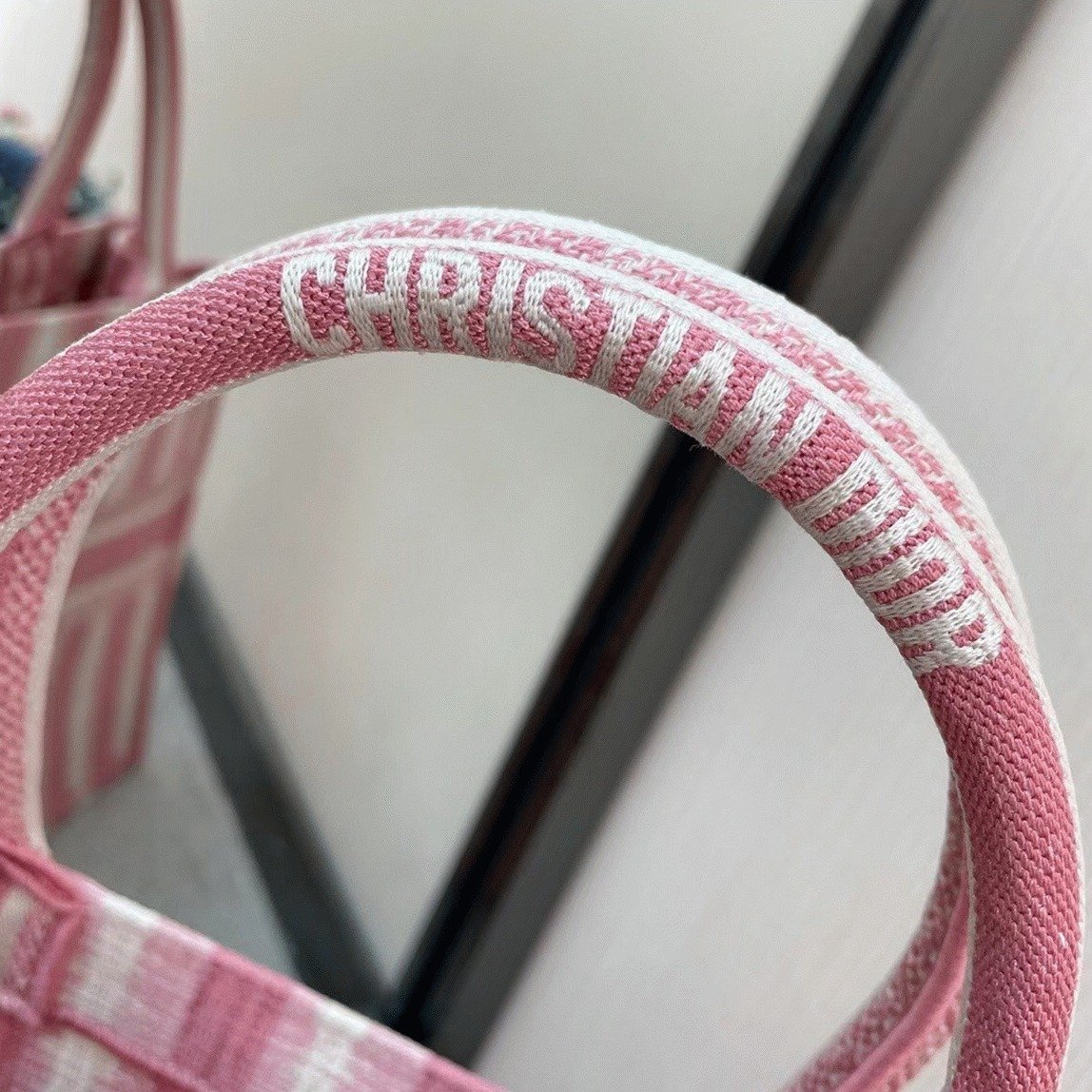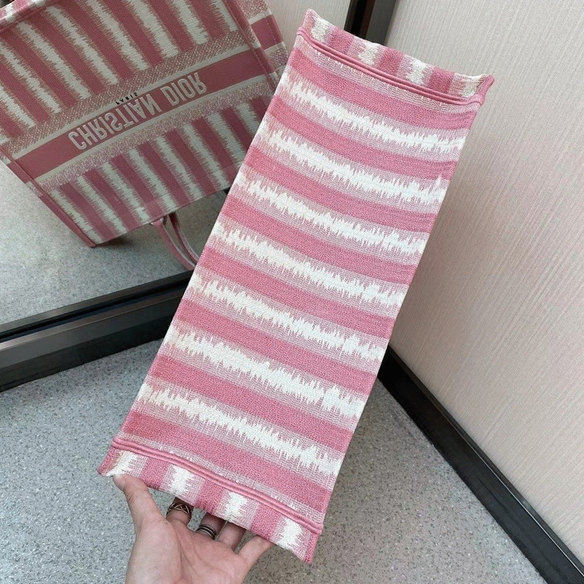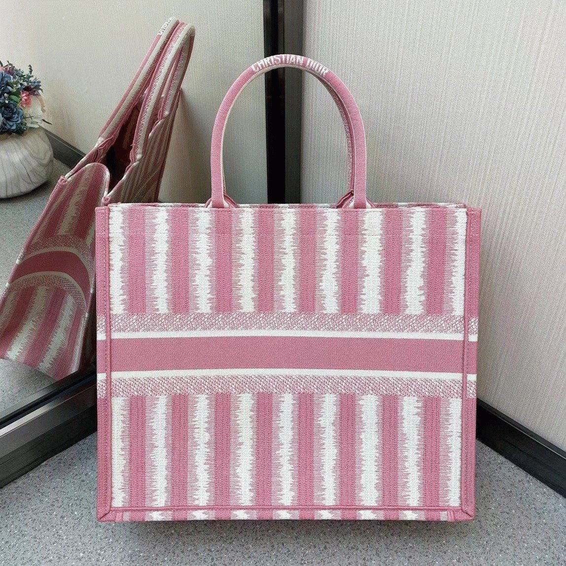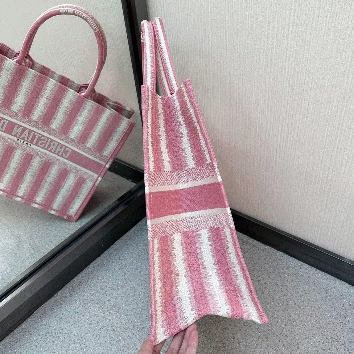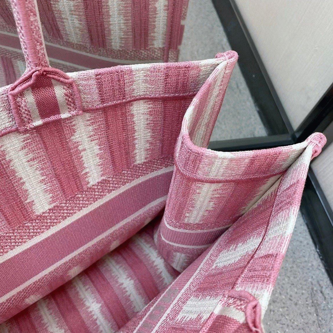 Dior Large Book Tote Bag Replica in Pink Stripes Embroidery