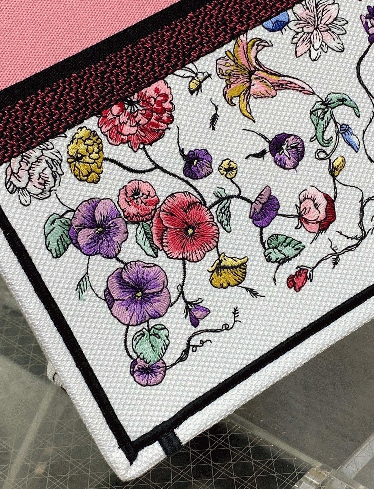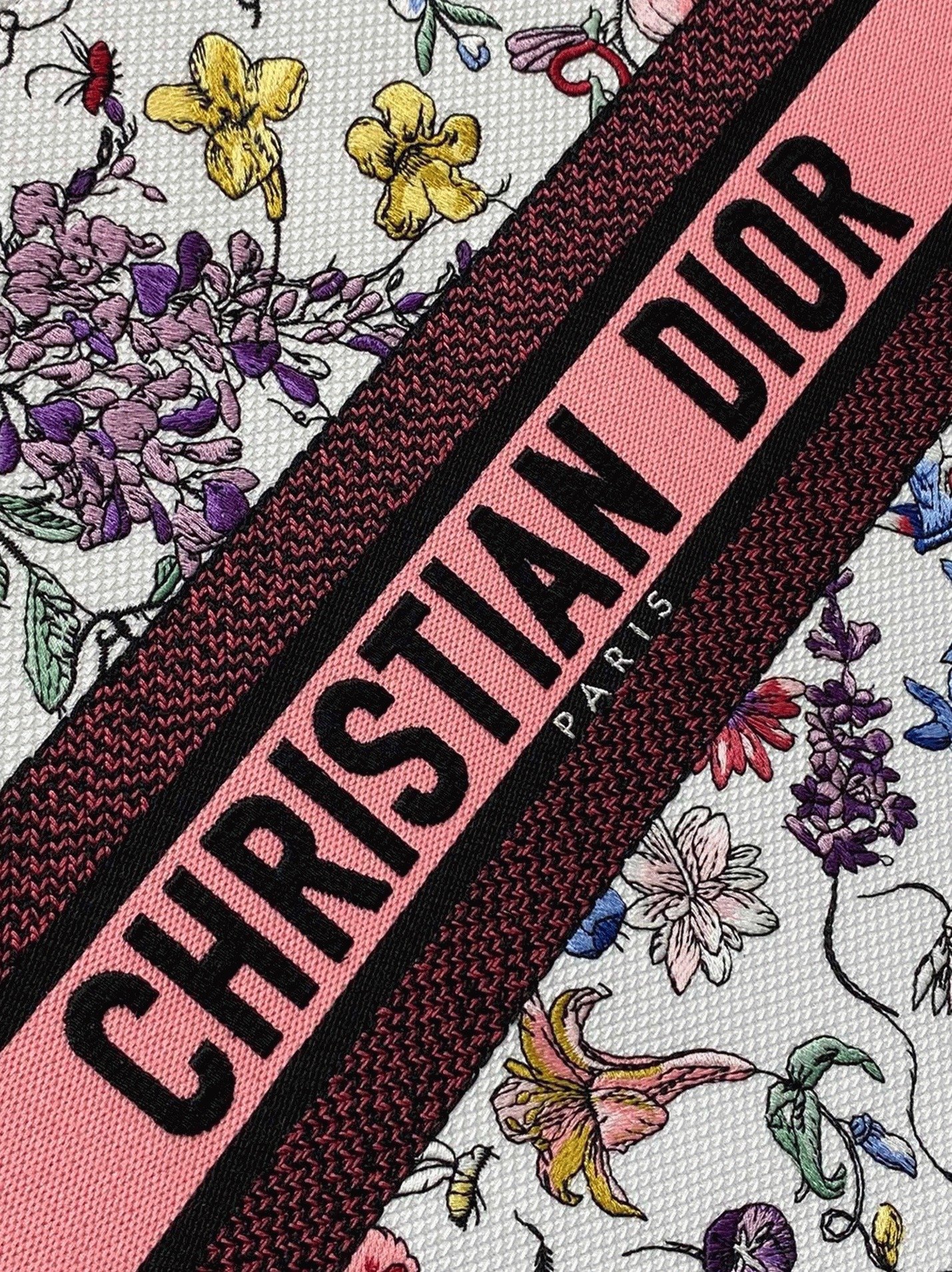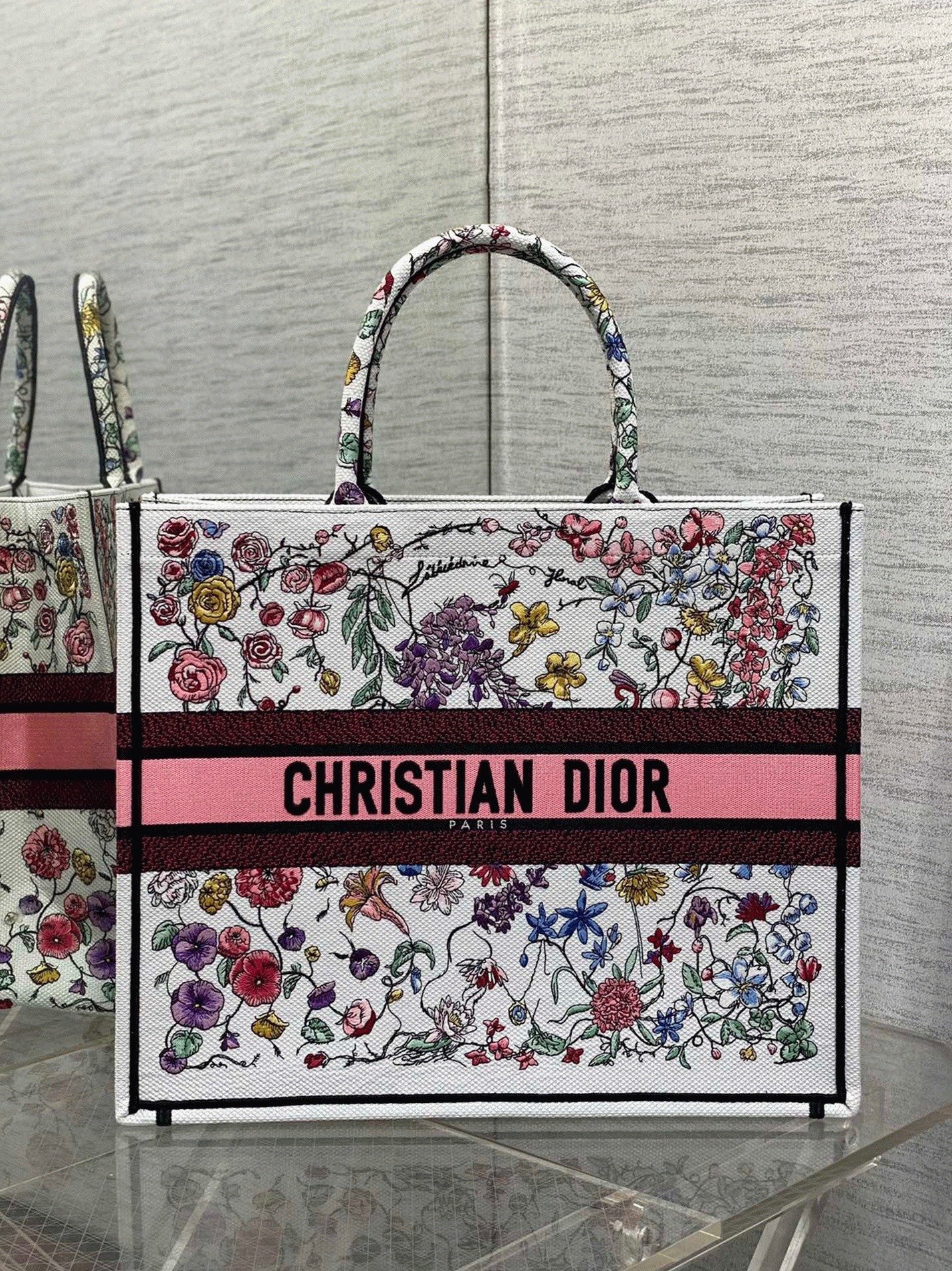 Dior Large Book Tote Bag Replica in White Multicolor Florilegio Embroidery