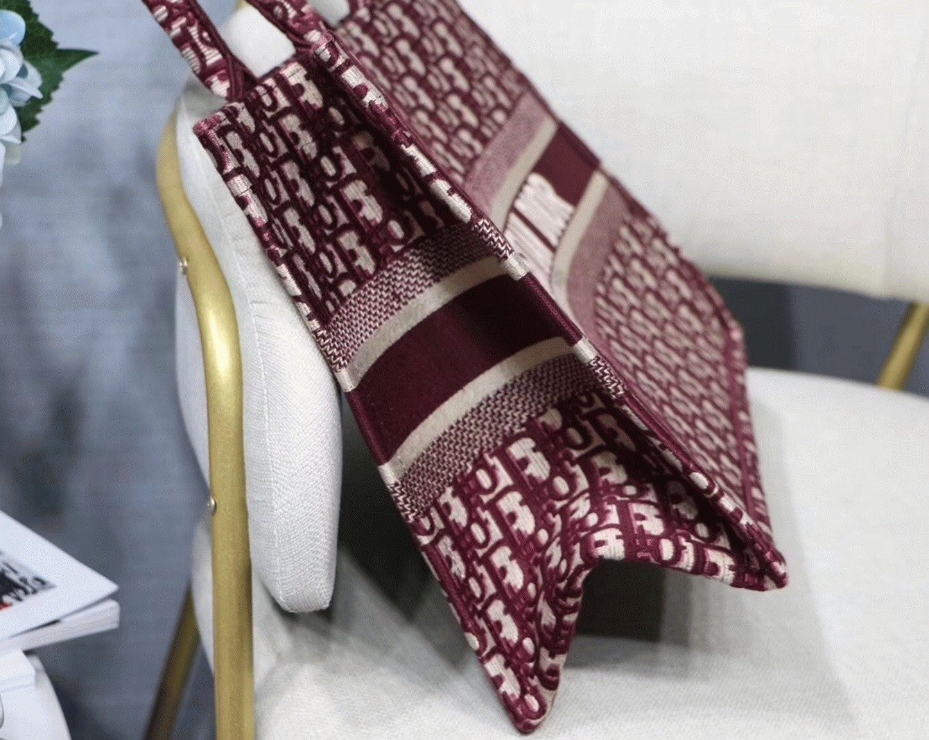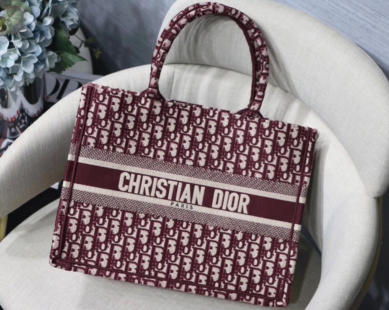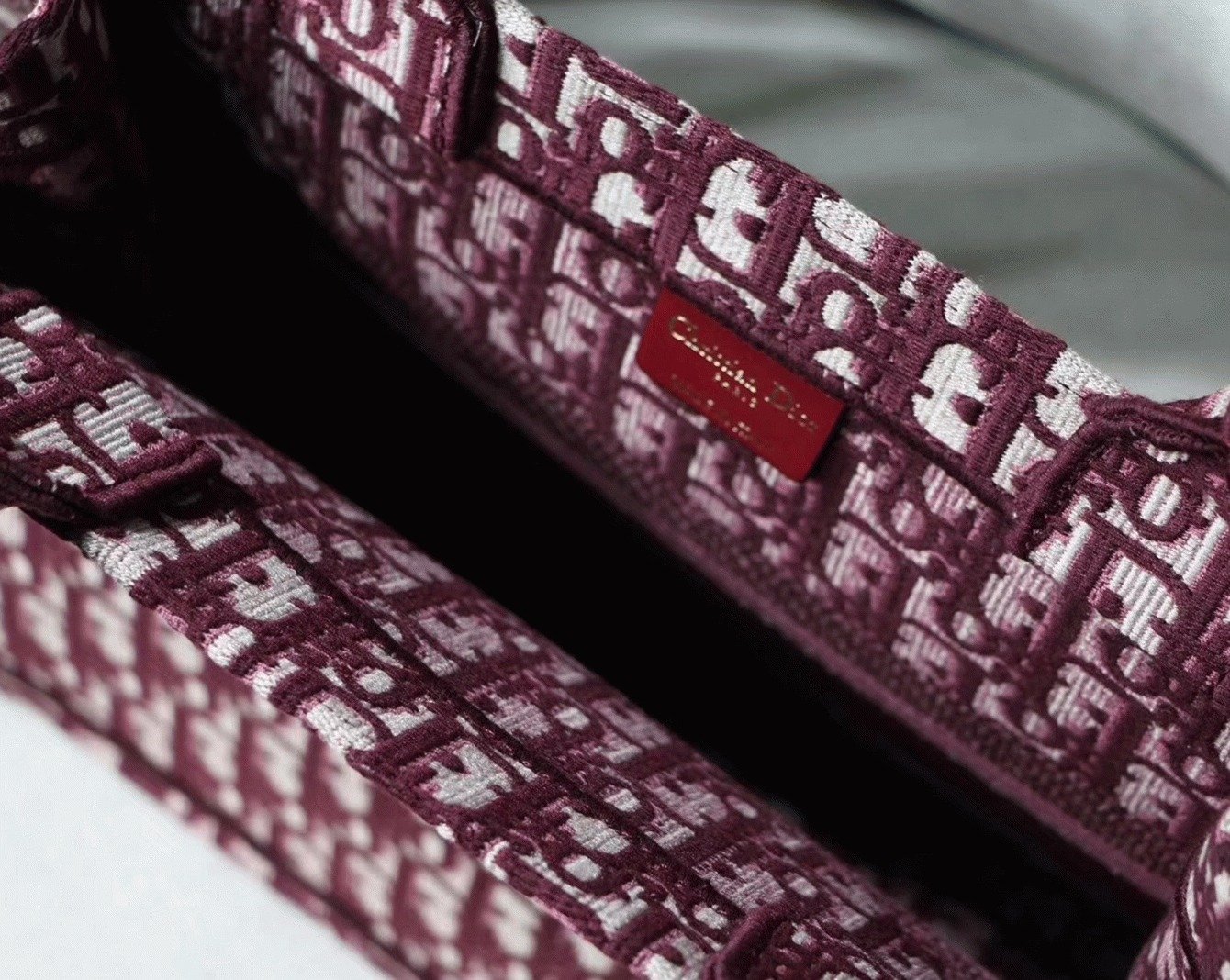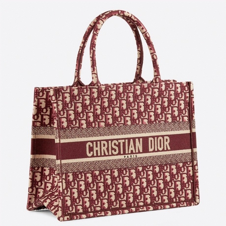 Dior Medium Book Tote Bag Fake in Bordeaux Dior Oblique Embroidery