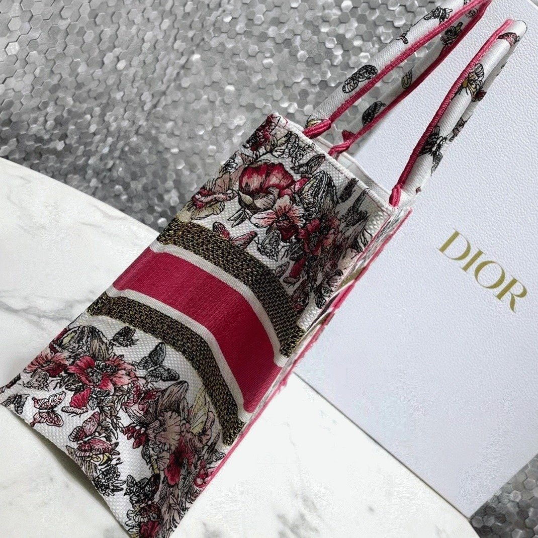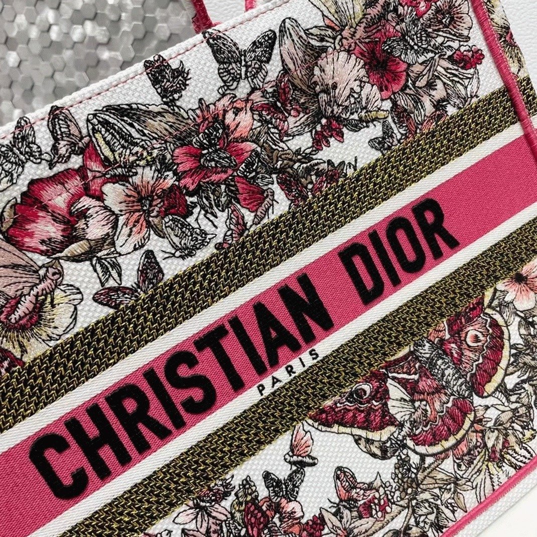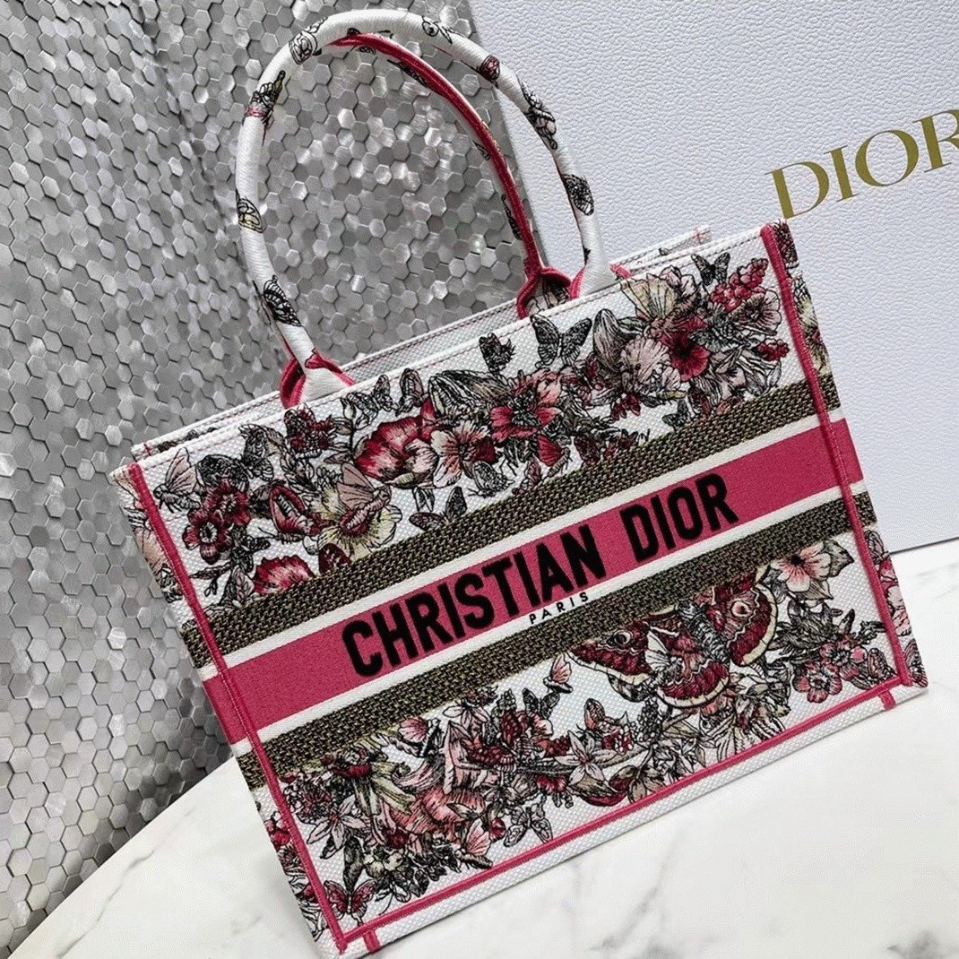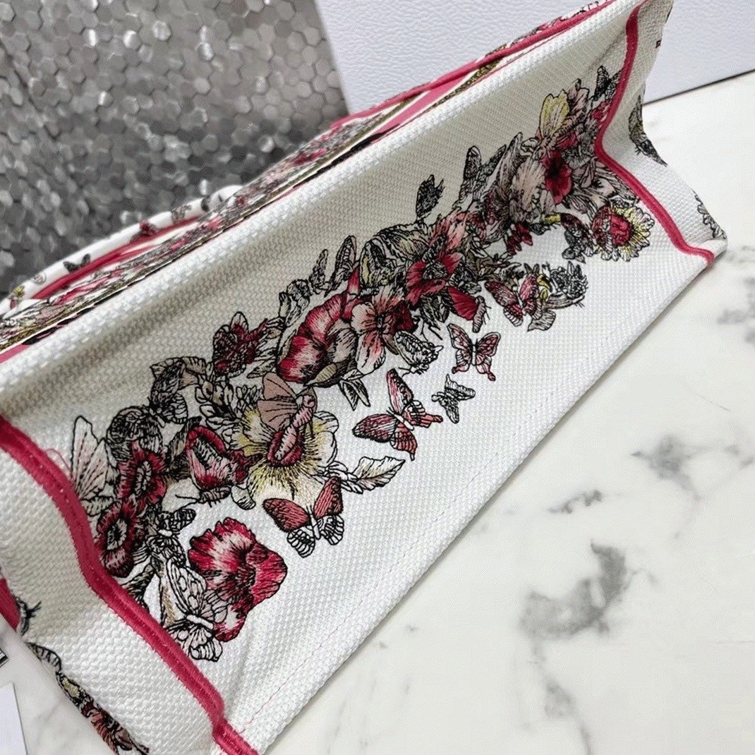 Dior Medium Book Tote Bag Fake in Multicolor Butterfly Embroidery