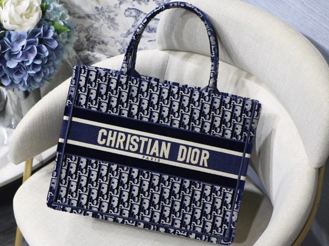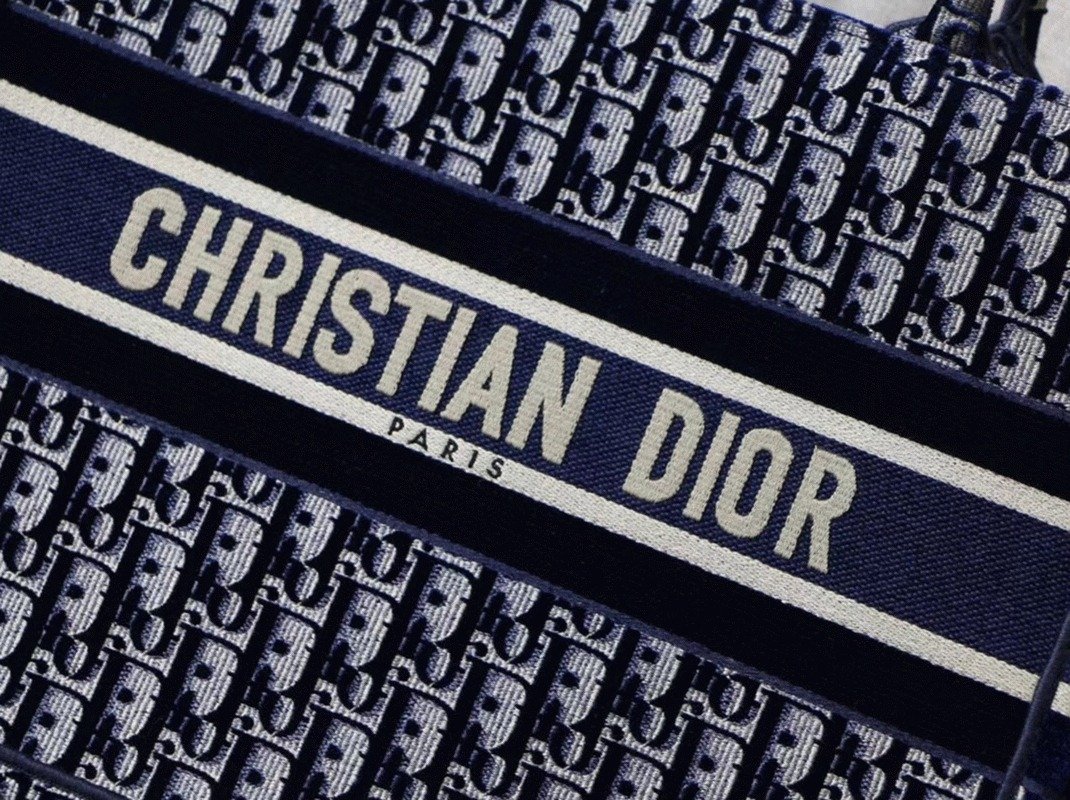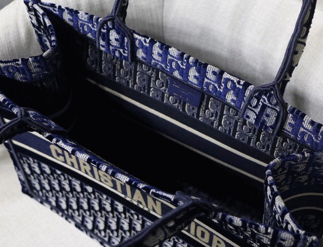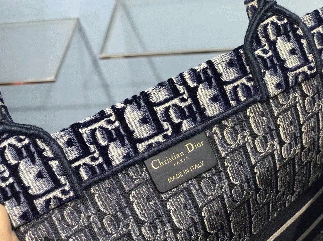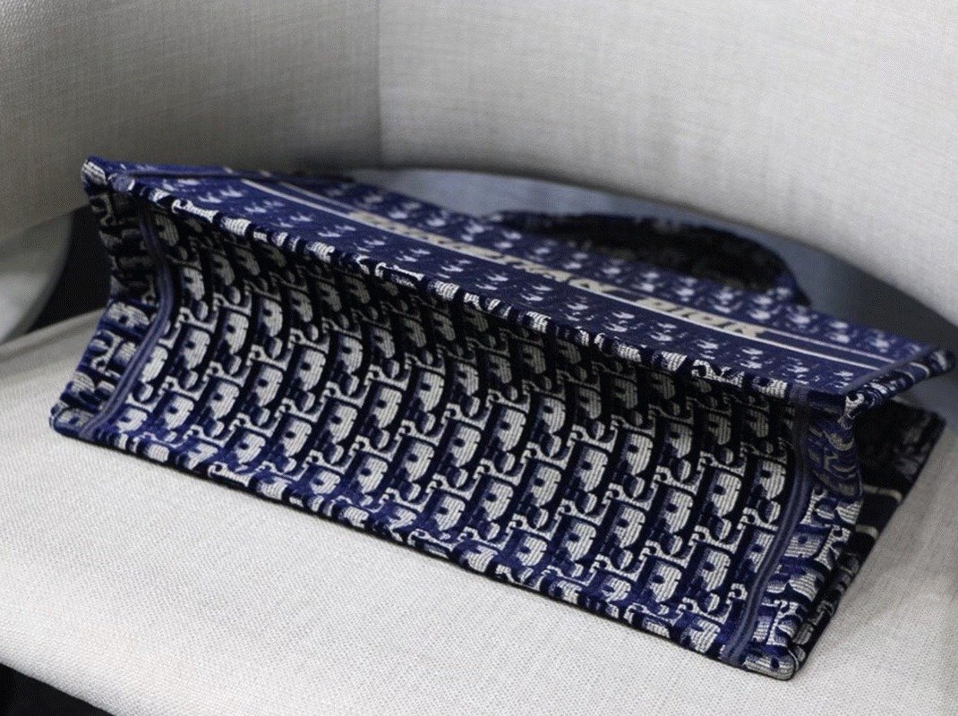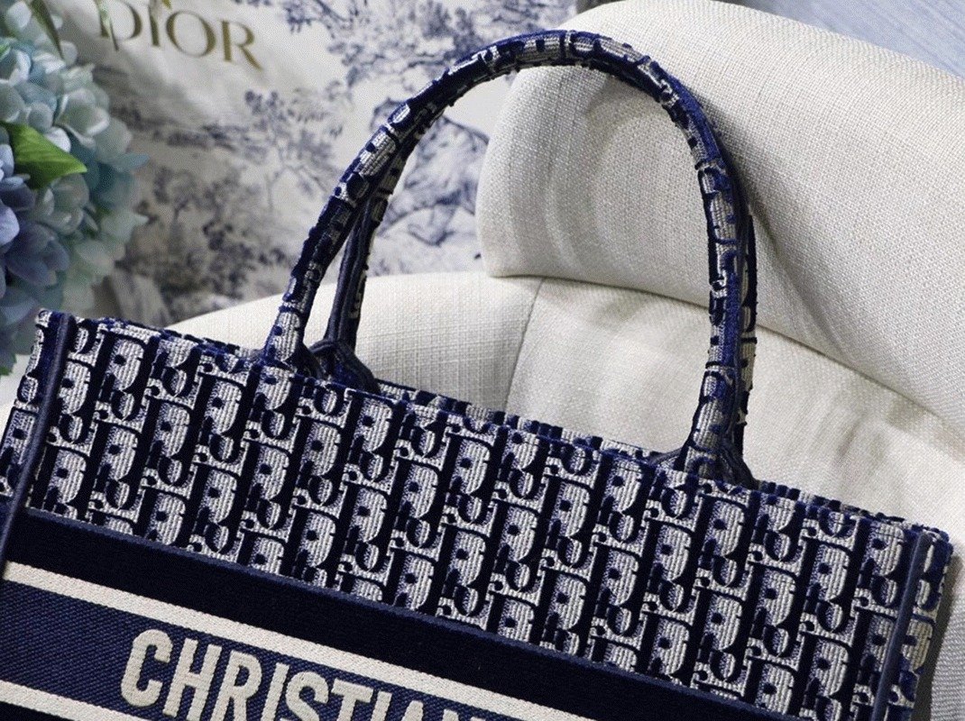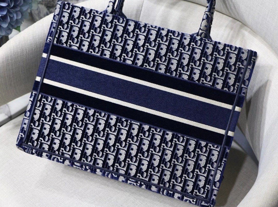 Dior Medium Book Tote Bag Knockoff in Blue Velvet Oblique Embroidered