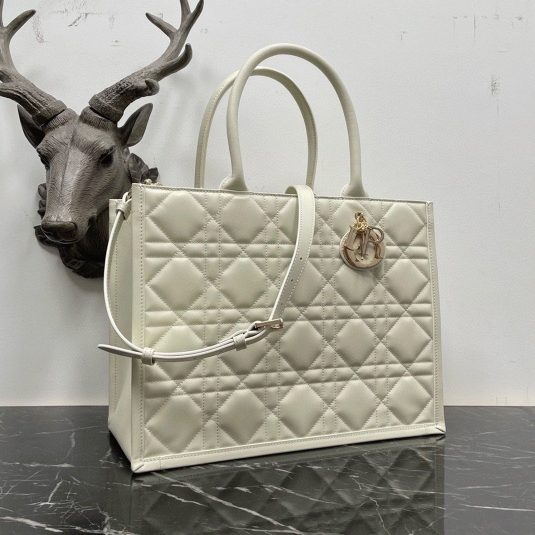 Dior Medium Book Tote Bag Knockoff with Strap in White