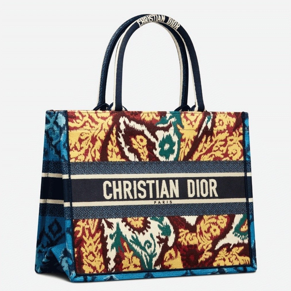 Dior Medium Book Tote Bag Replica in Blue Multicolor Dior Paisley Embroidery