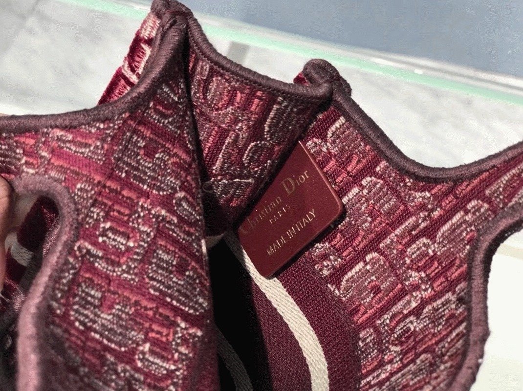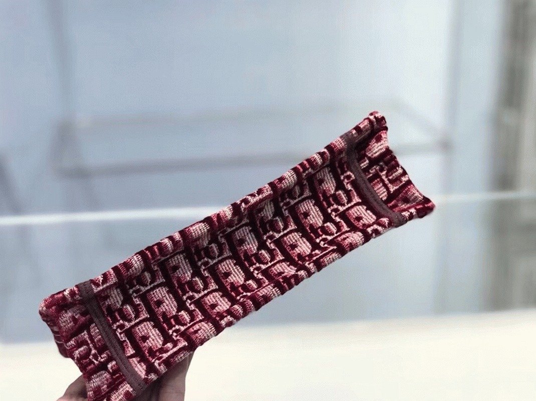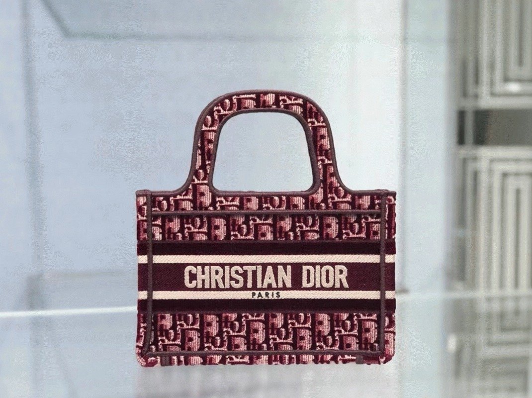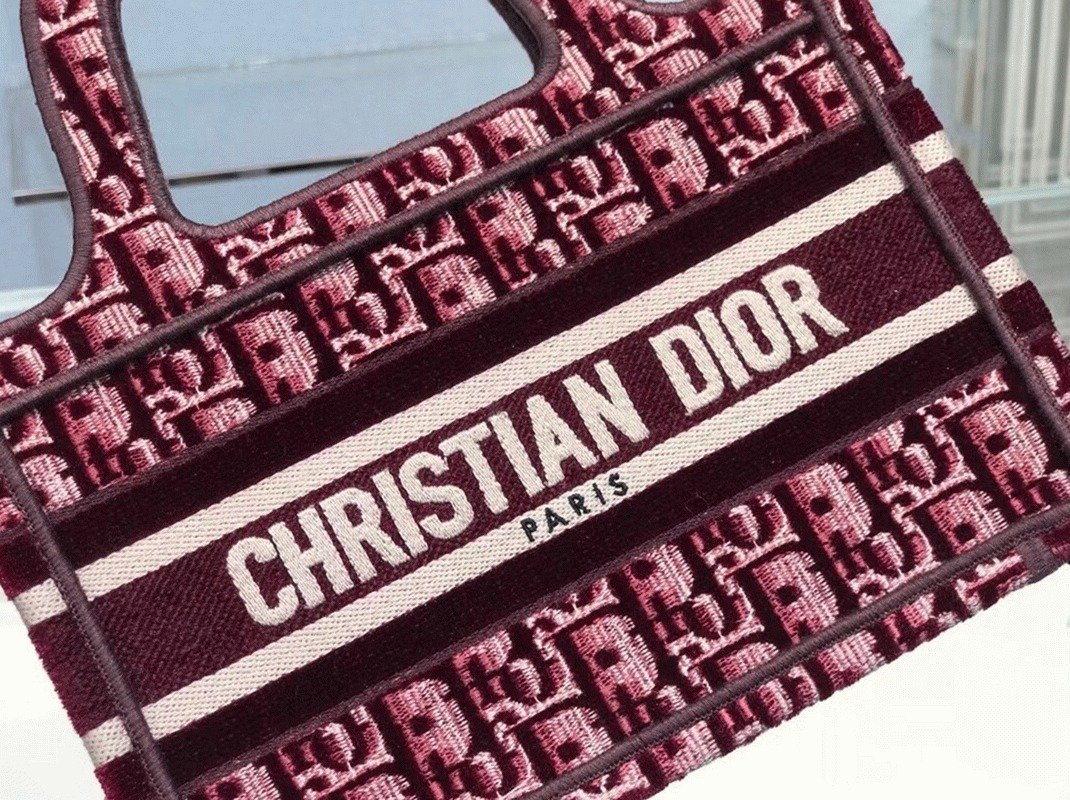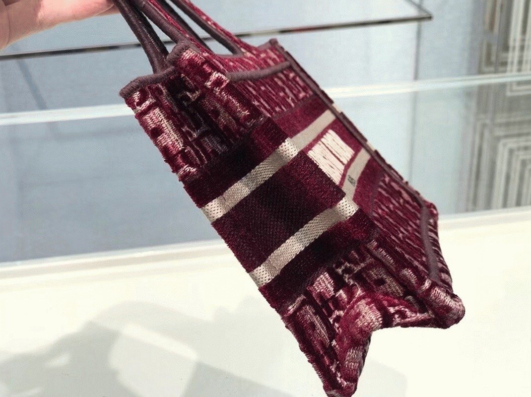 Dior Mini Book Tote Bag Replica in Bordeaux Velvet Oblique Embroidered