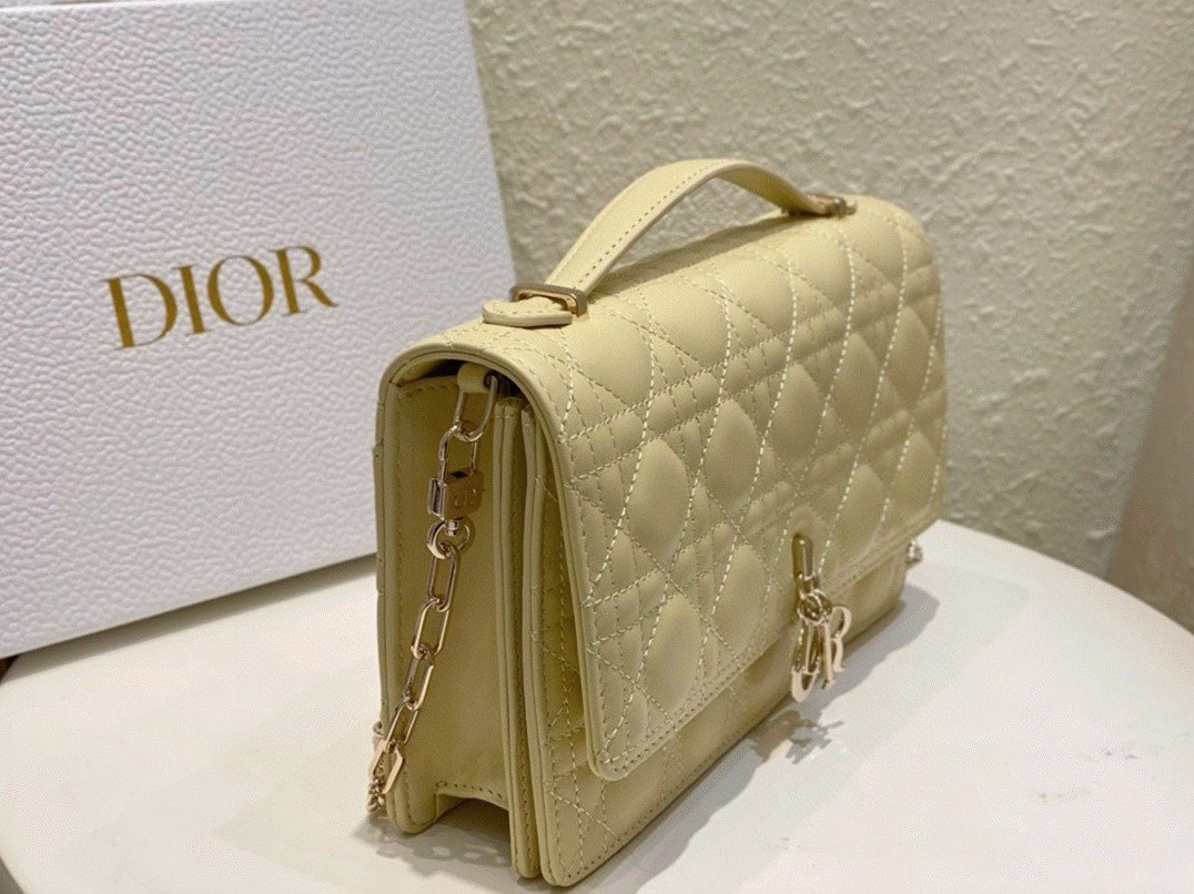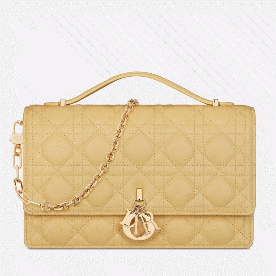 Dior Miss Dior Top Handle Bag Knockoff in Pastel Yellow Cannage Lambskin