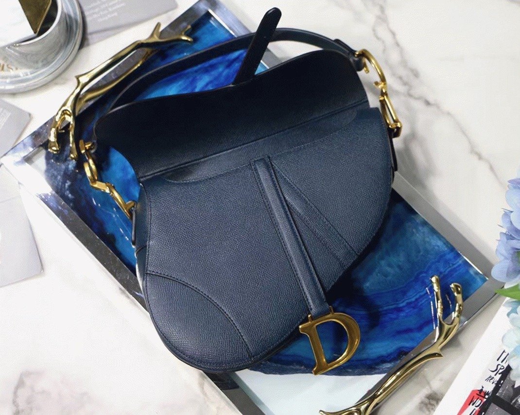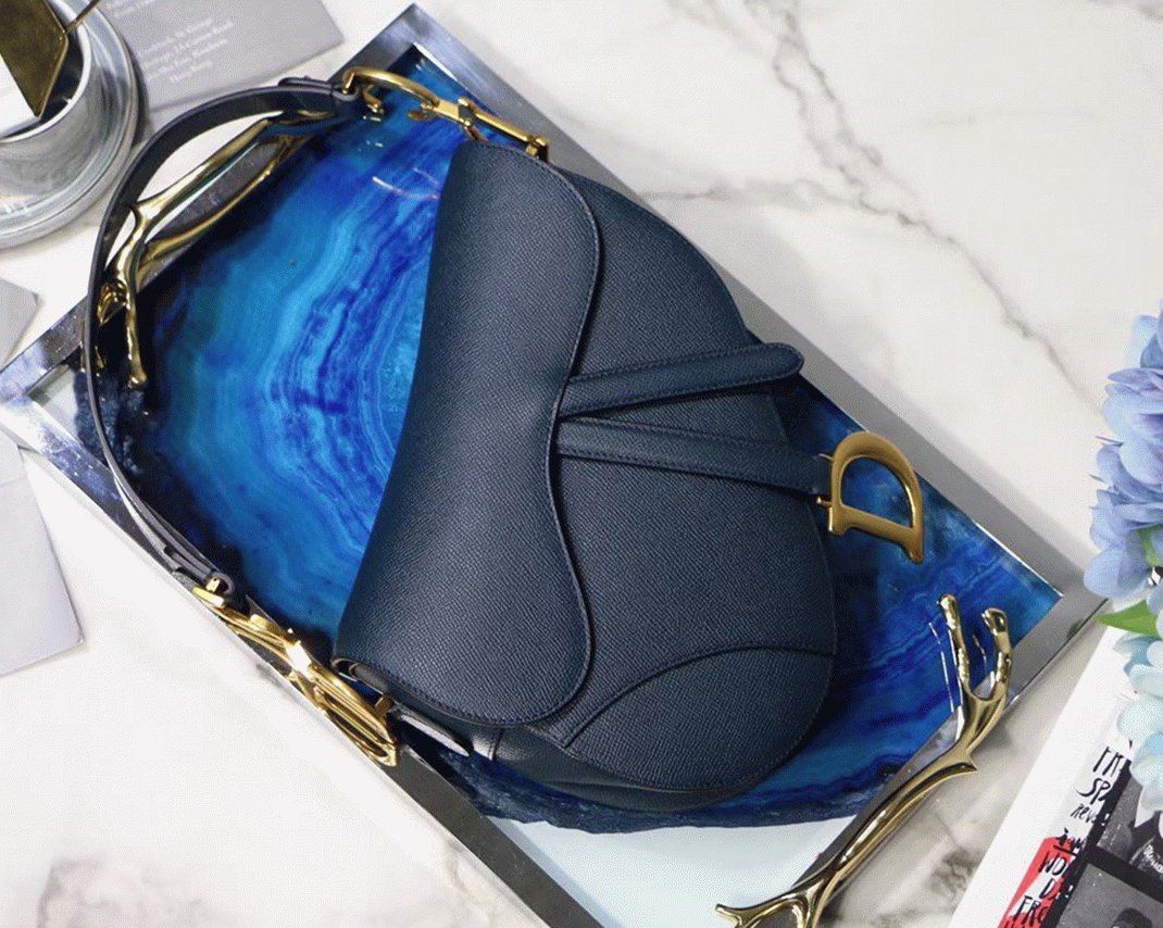 Dior Saddle Bag Imitation in Indigo Blue Grained Calfskin