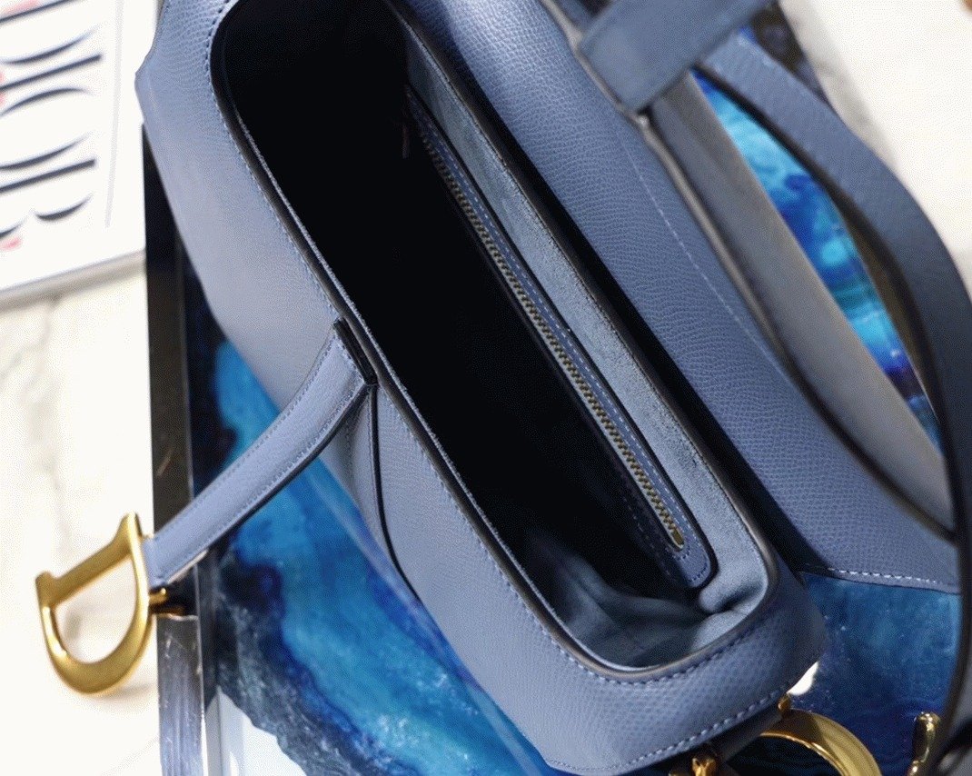 Dior Saddle Bag Knockoff in Denim Blue Grained Calfskin