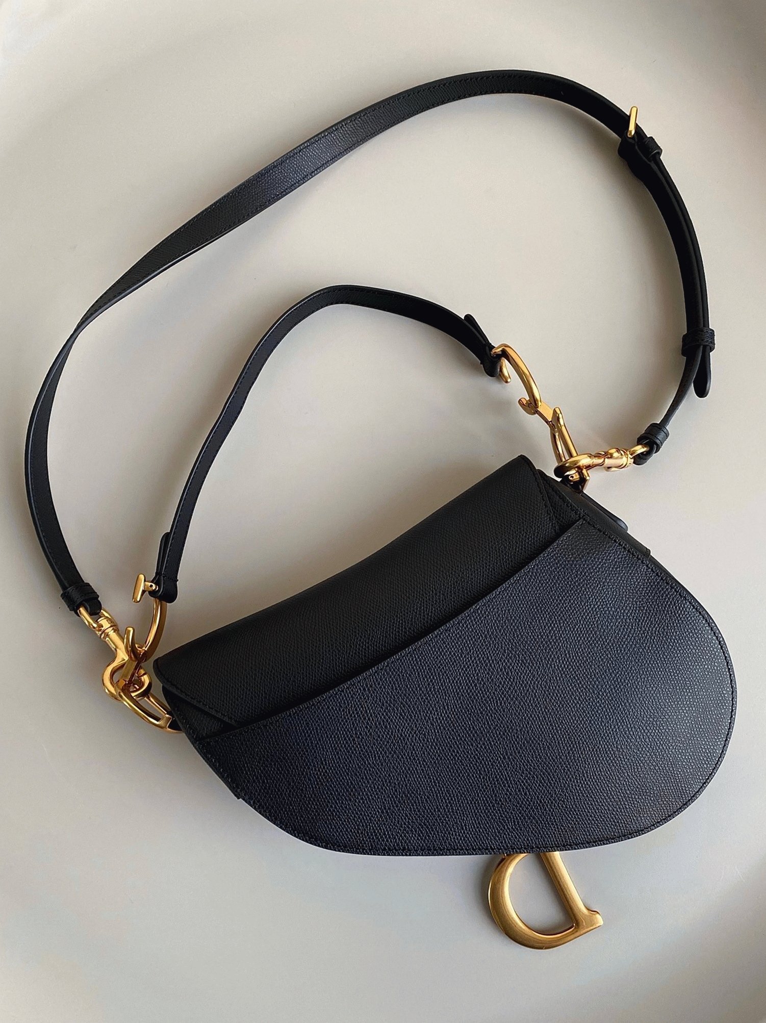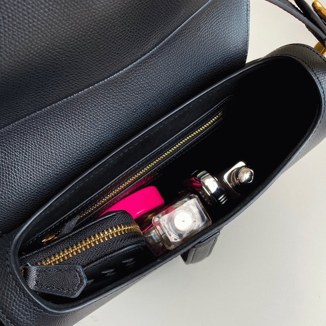 Maria Grazia Chiuri brings a contemporary twist to the iconic Saddle bag, reimagined in luxurious grained calfskin. This recognizable design showcases the signature curved Saddle flap, secured with a magnetic ‘D’ stirrup clasp, and is accented with antique gold-finish ‘CD’ details on either side of the strap. It comes with a slim, adjustable, and detachable shoulder strap, offering the flexibility to carry it by hand, wear it on the shoulder, or style it crossbody.