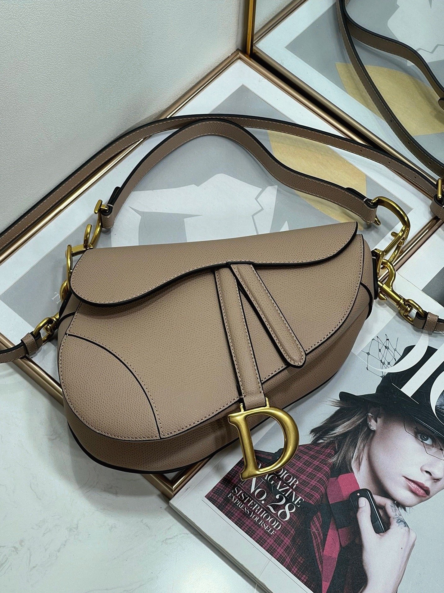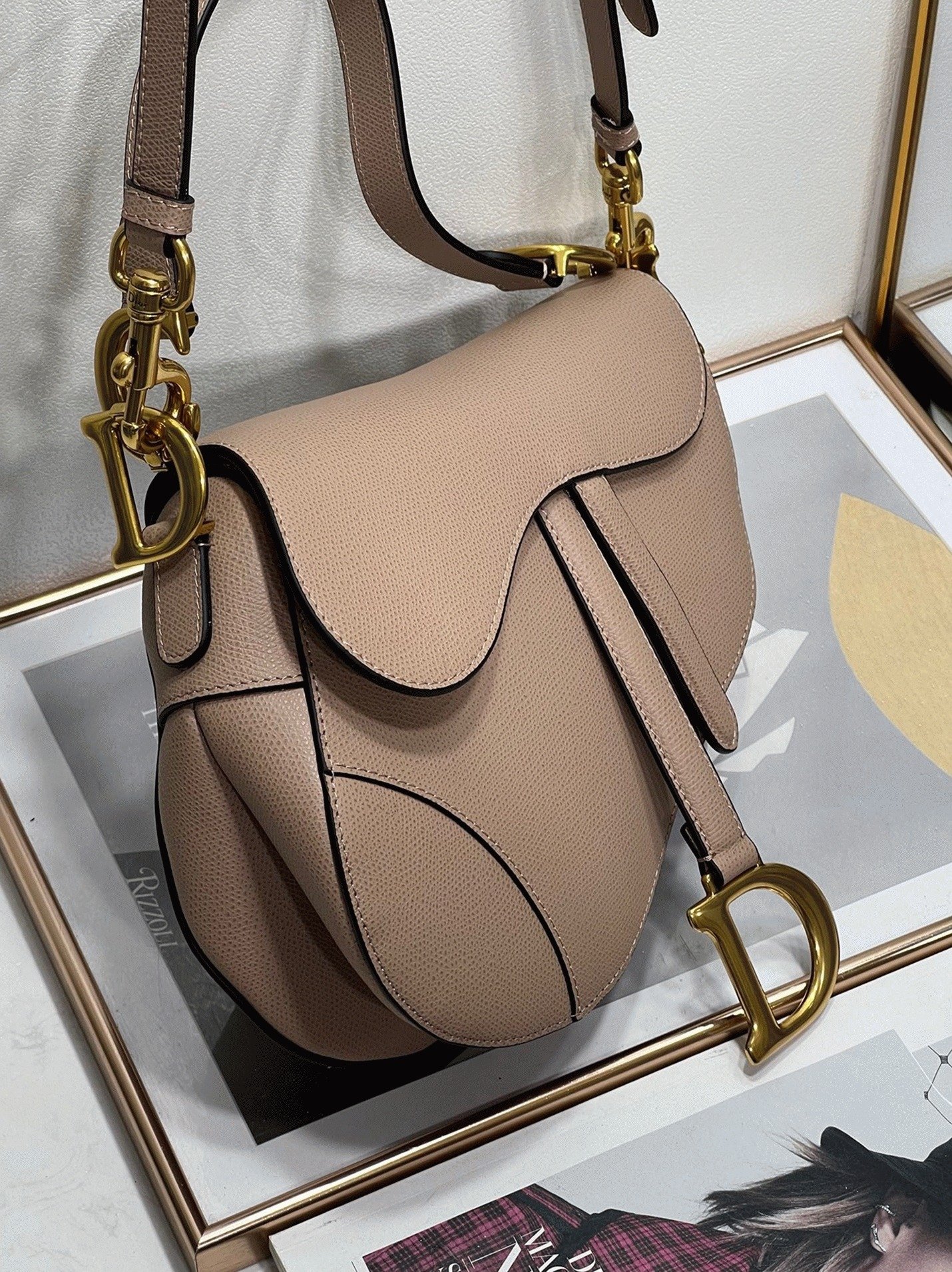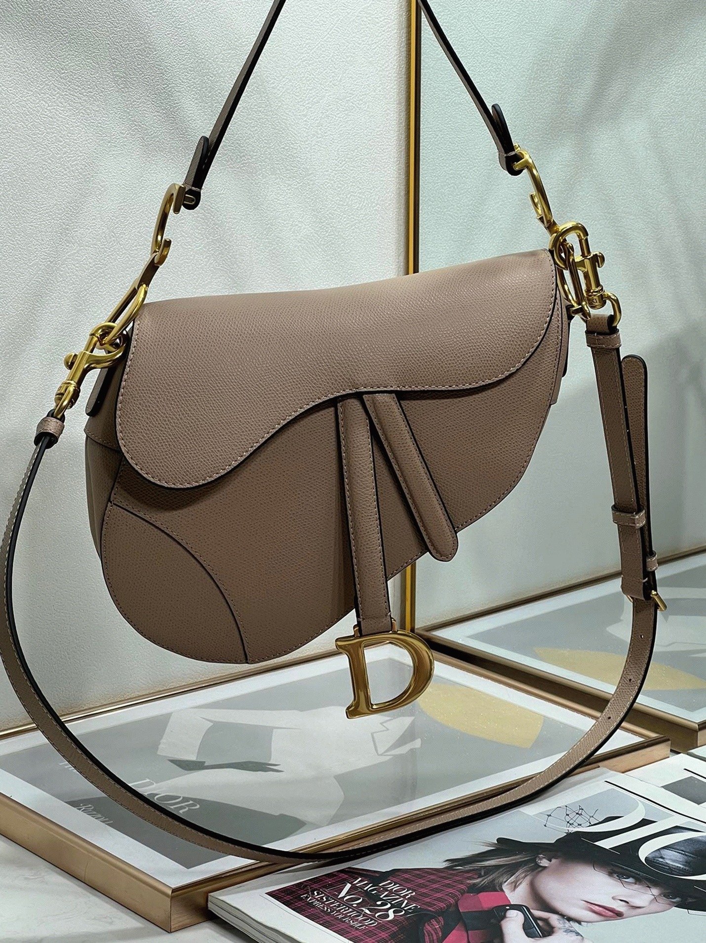 Dior Saddle Bag with Strap Faux in Warm Taupe Grained Calfskin