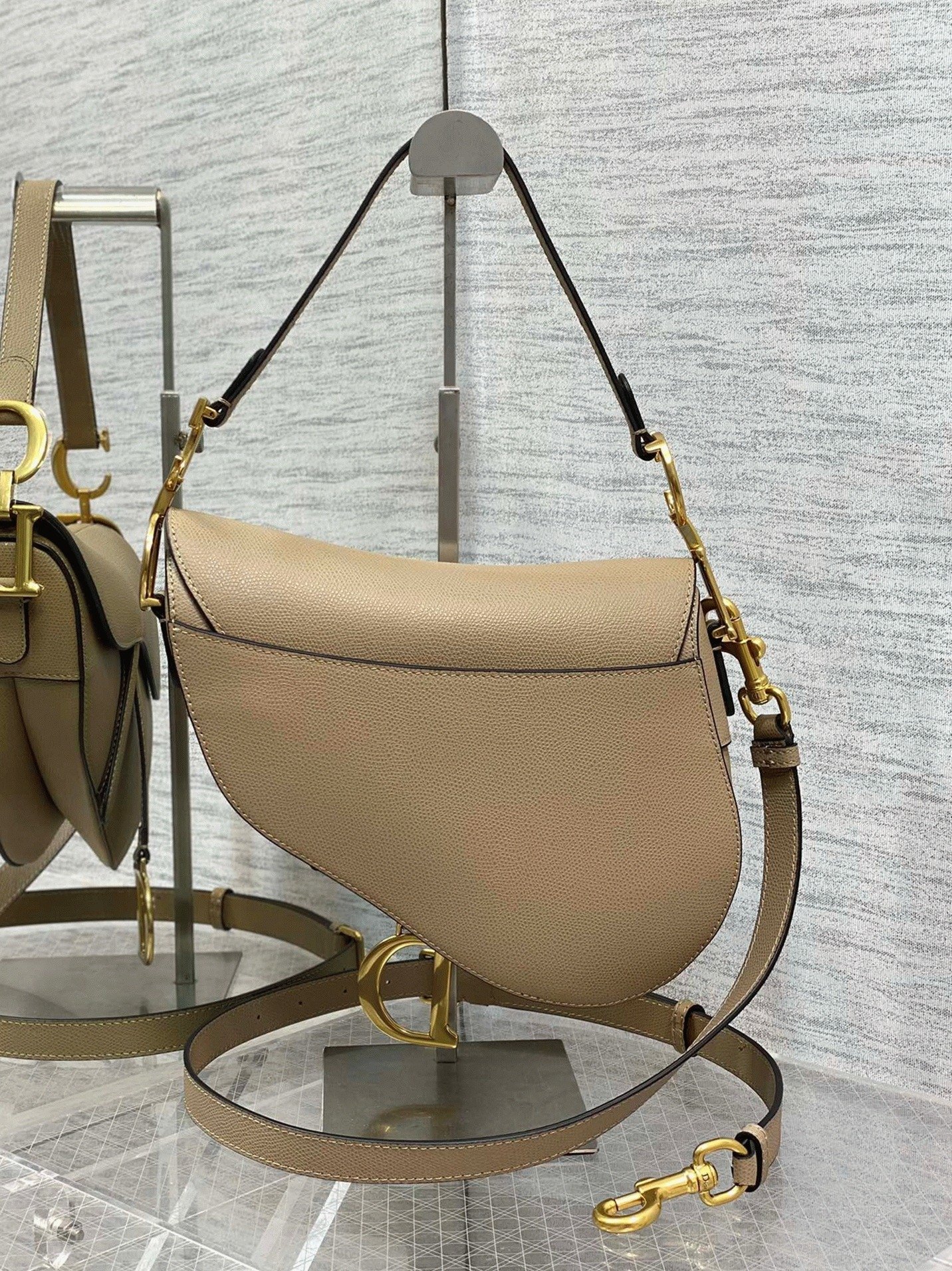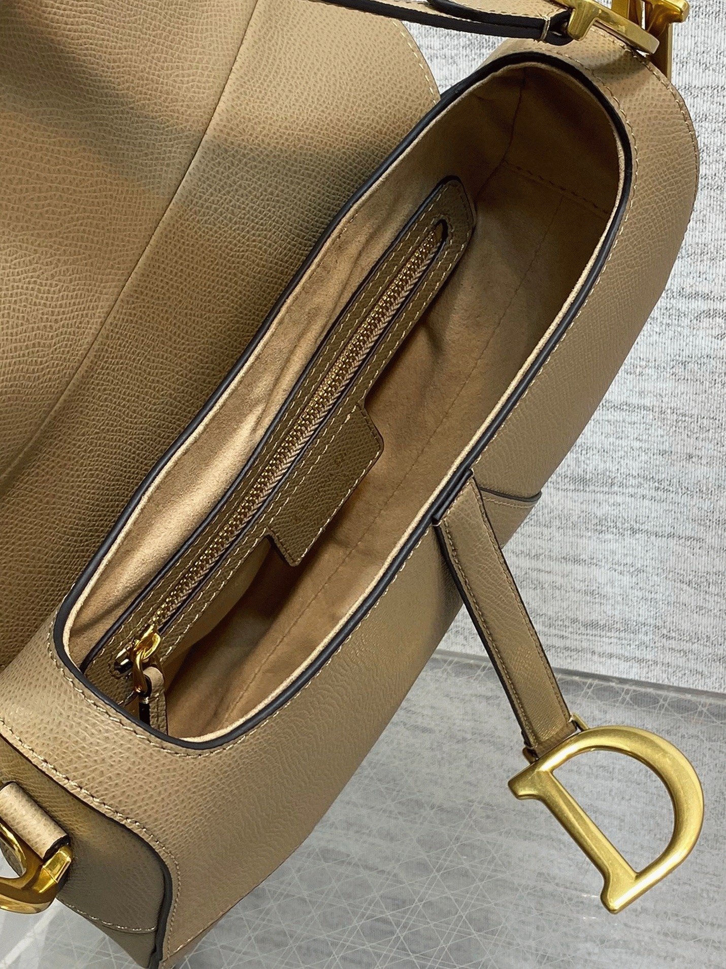 Dior Saddle Bag with Strap Replica in Sand Grained Calfskin