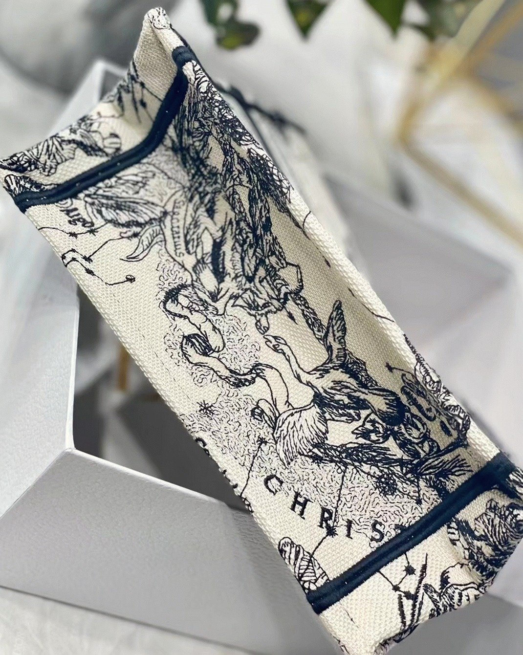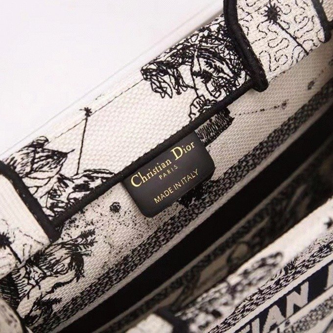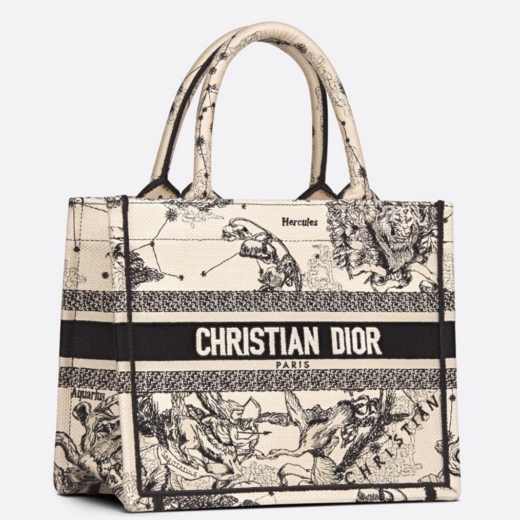 Dior Small Book Tote Bag Faux in White Toile de Jouy Zodiac Embroidery