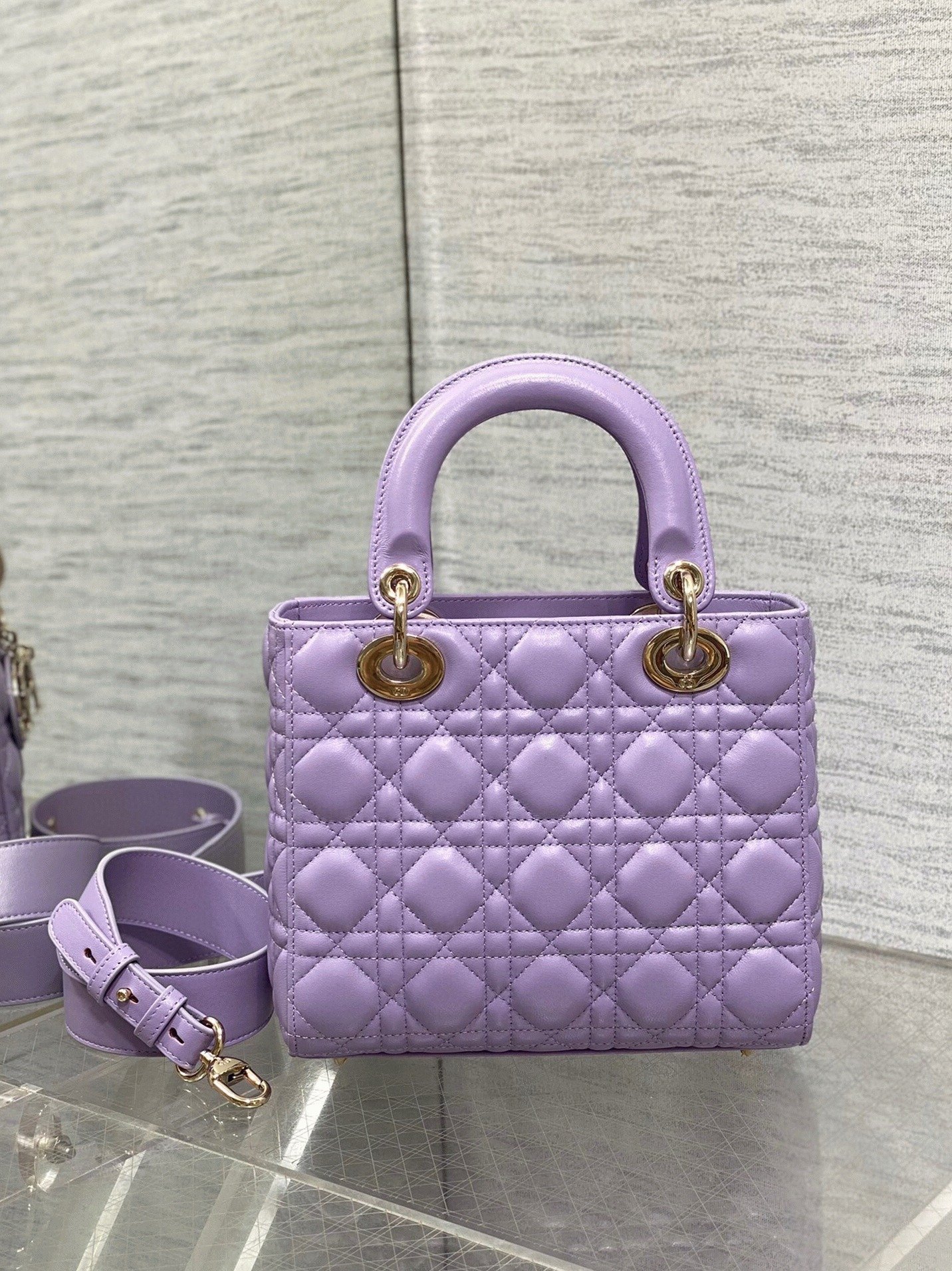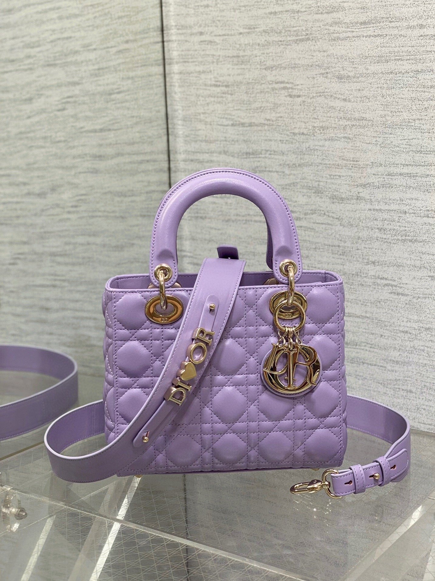 Dior Small Lady Dior Bag Fake in Lilas Lambskin with Resin Charms