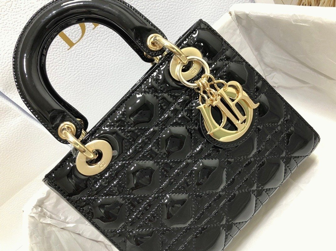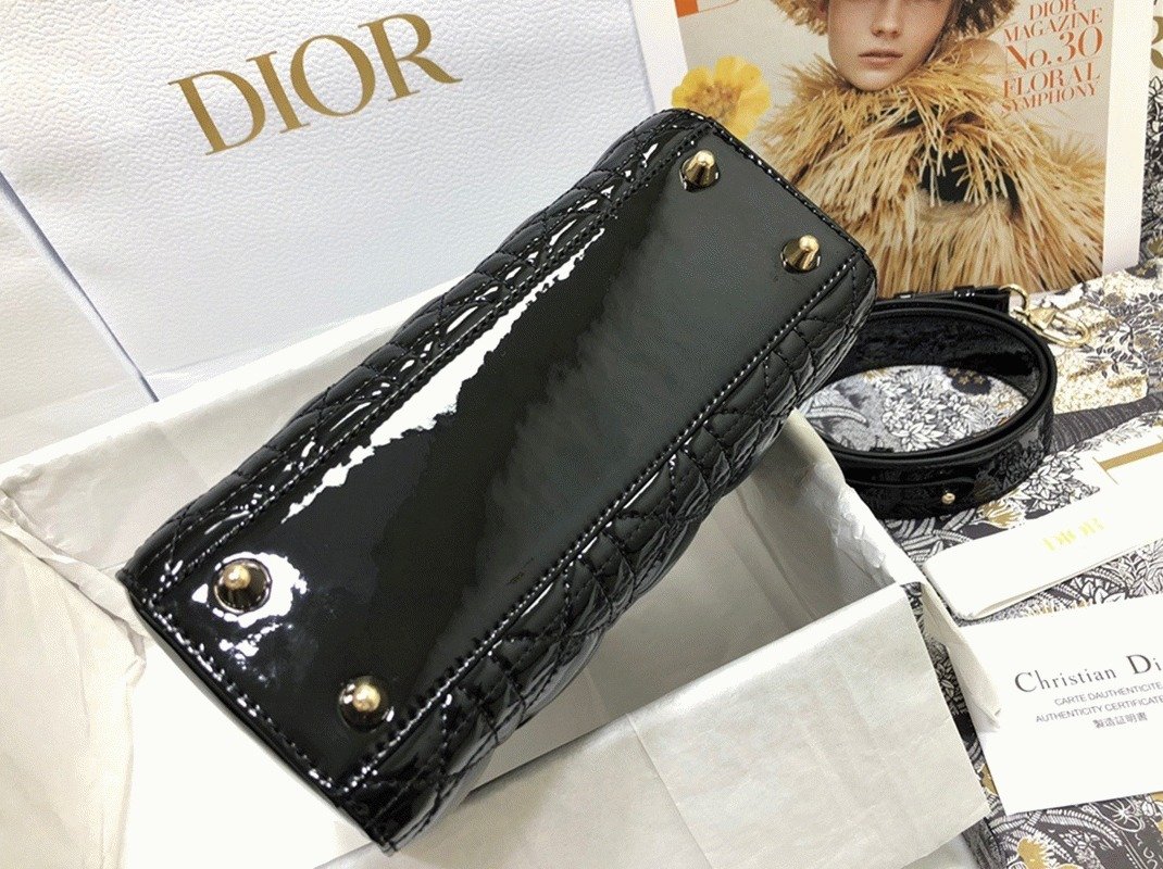 Dior Small Lady Dior Bag Knockoff in Black Patent Cannage Calfskin