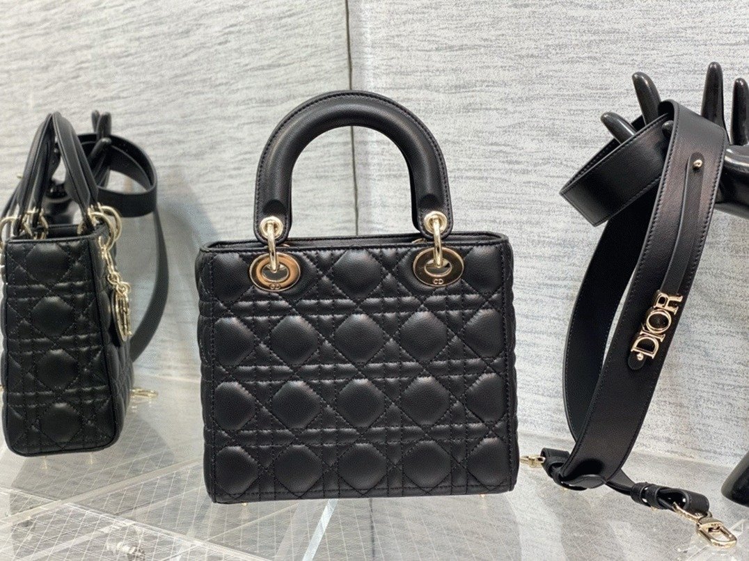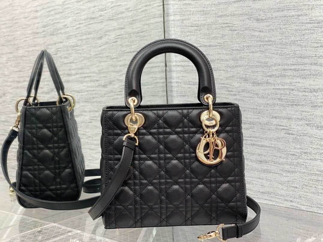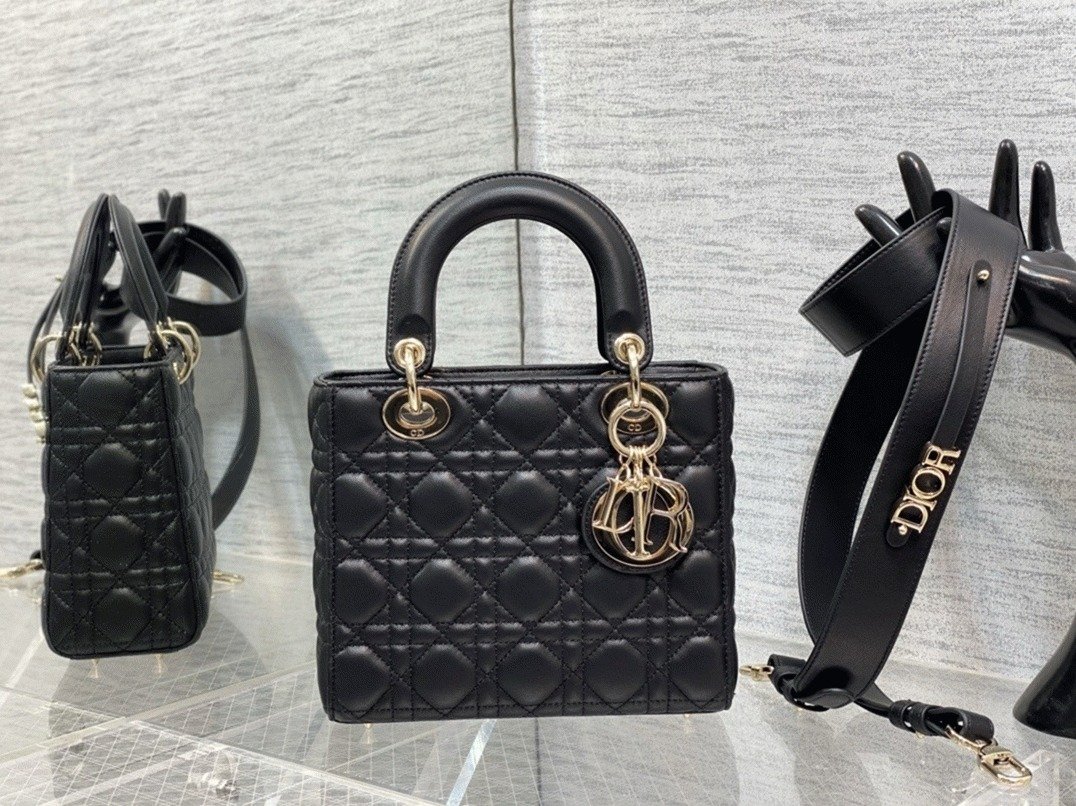 The Lady Dior My ABCDior bag reflects the Houses dedication to elegance and beauty. With a sleek and refined design, this timeless piece is made from calfskin featuring the signature Cannage stitching that forms a unique quilted pattern. The silhouette is enhanced by pale gold-finish metal ‘D.I.O.R.’ charms. It includes an adjustable and removable leather shoulder strap, offering versatility to carry by hand or wear crossbody.
