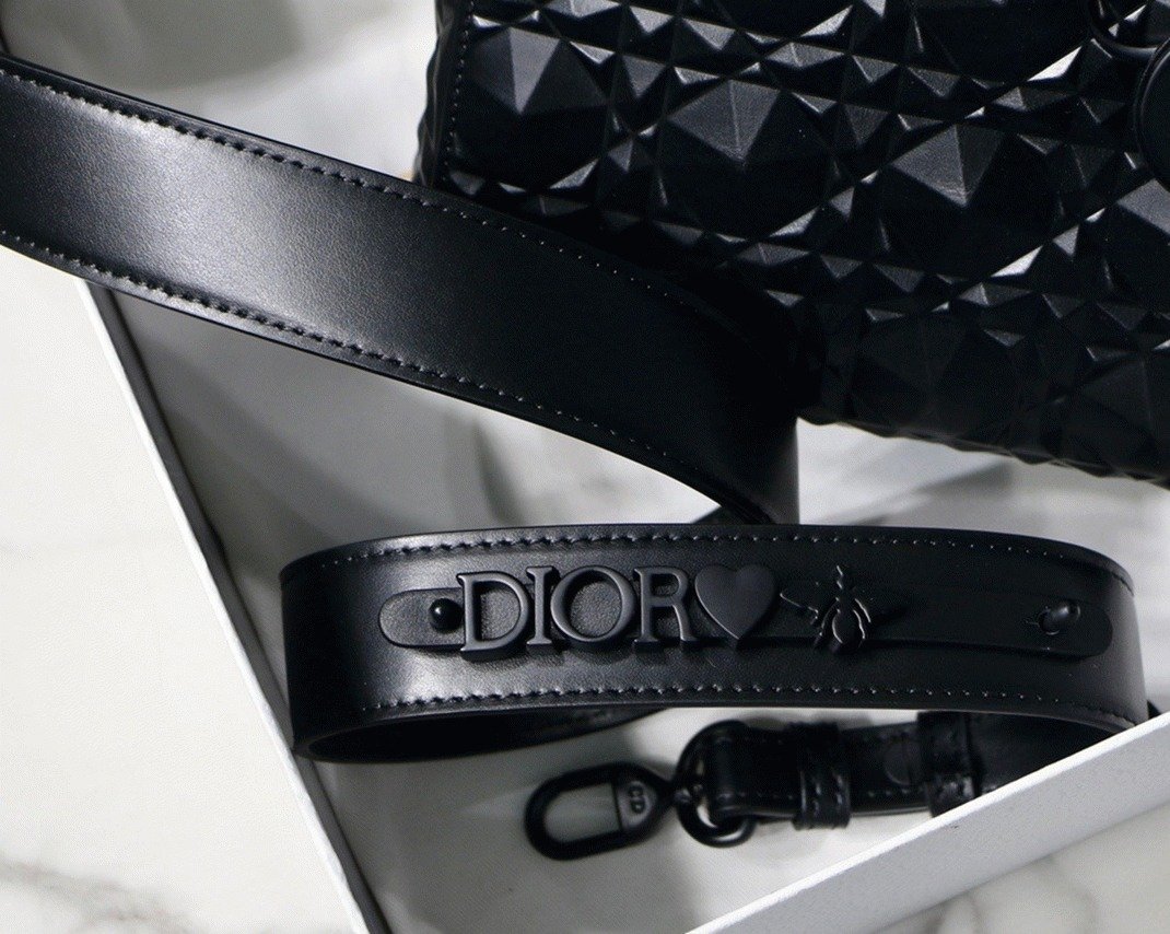 The Lady Dior My ABCDior bag embodies the House’s vision of refined elegance. Crafted from lambskin featuring the signature Cannage quilting, this sophisticated accessory is enhanced with pale gold-finish metal ‘D.I.O.R.’ charms. It offers a wide, adjustable shoulder strap that can be personalized with three included badges, allowing for versatile stylingeither carried by hand or worn crossbody.