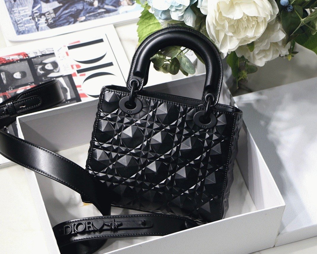 Dior Small Lady Dior My ABCDior Bag Fake in Black Calfskin with Diamond Motif