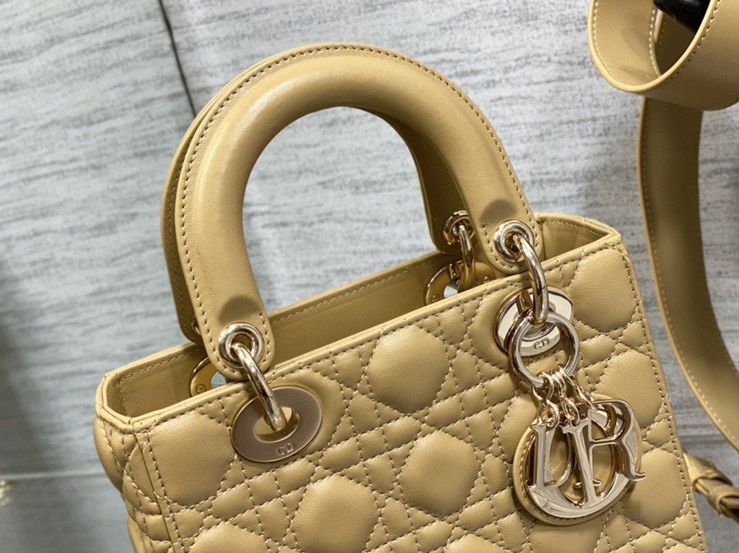 The Lady Dior My ABCDior bag embodies the House’s vision of refined elegance. Crafted from lambskin featuring the signature Cannage quilting, this sophisticated accessory is enhanced with pale gold-finish metal ‘D.I.O.R.’ charms. It offers a wide, adjustable shoulder strap that can be personalized with three included badges, allowing for versatile stylingeither carried by hand or worn crossbody.