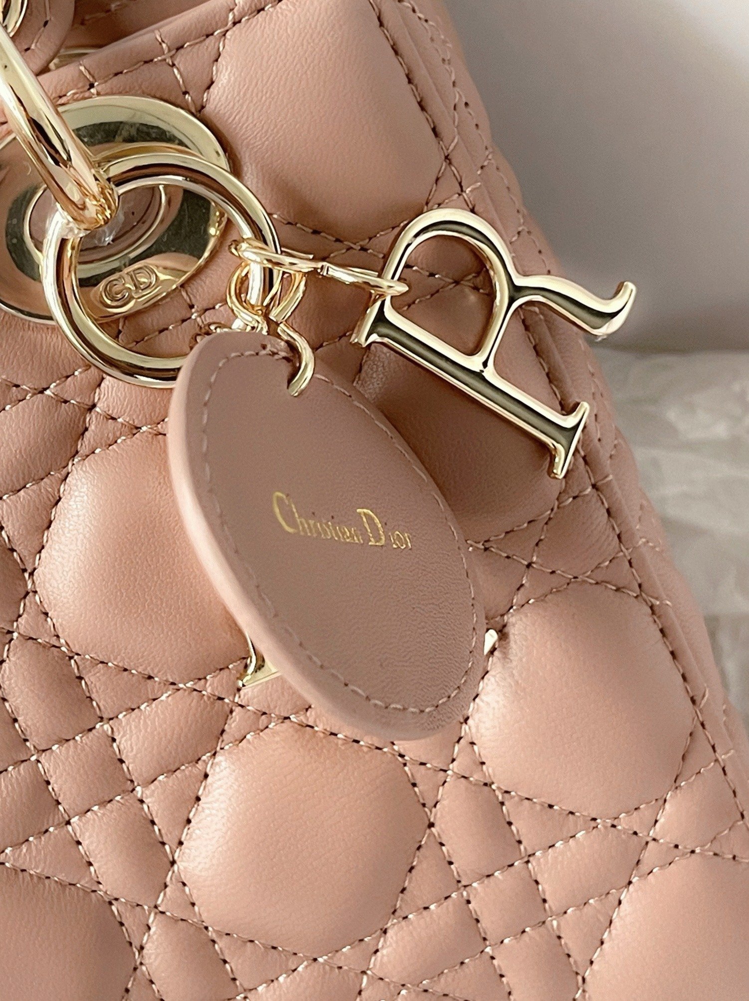 Pale gold-finish metal ‘D.I.O.R.’ charms