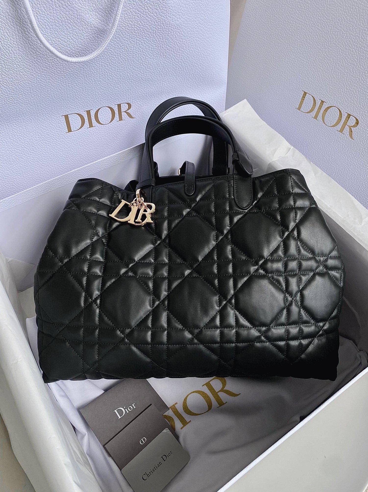 Dior Toujours Large Bag Replica in Black Macrocannage Calfskin