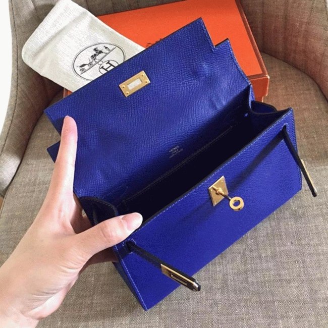 Electric Blue Epsom Replica Hermes Kelly Pochette Bright Purse