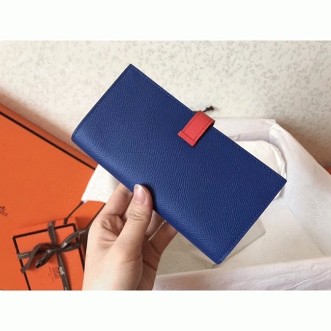 Electric Blue Piment Epsom Imitation Hermes Bearn Wallet