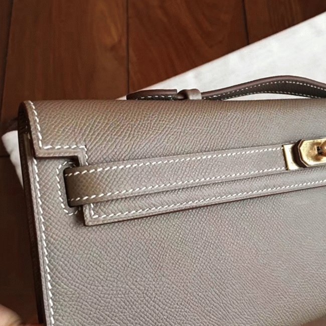 Etoupe Epsom Knockoff Hermes Kelly Cut Clutch Stylish Purse