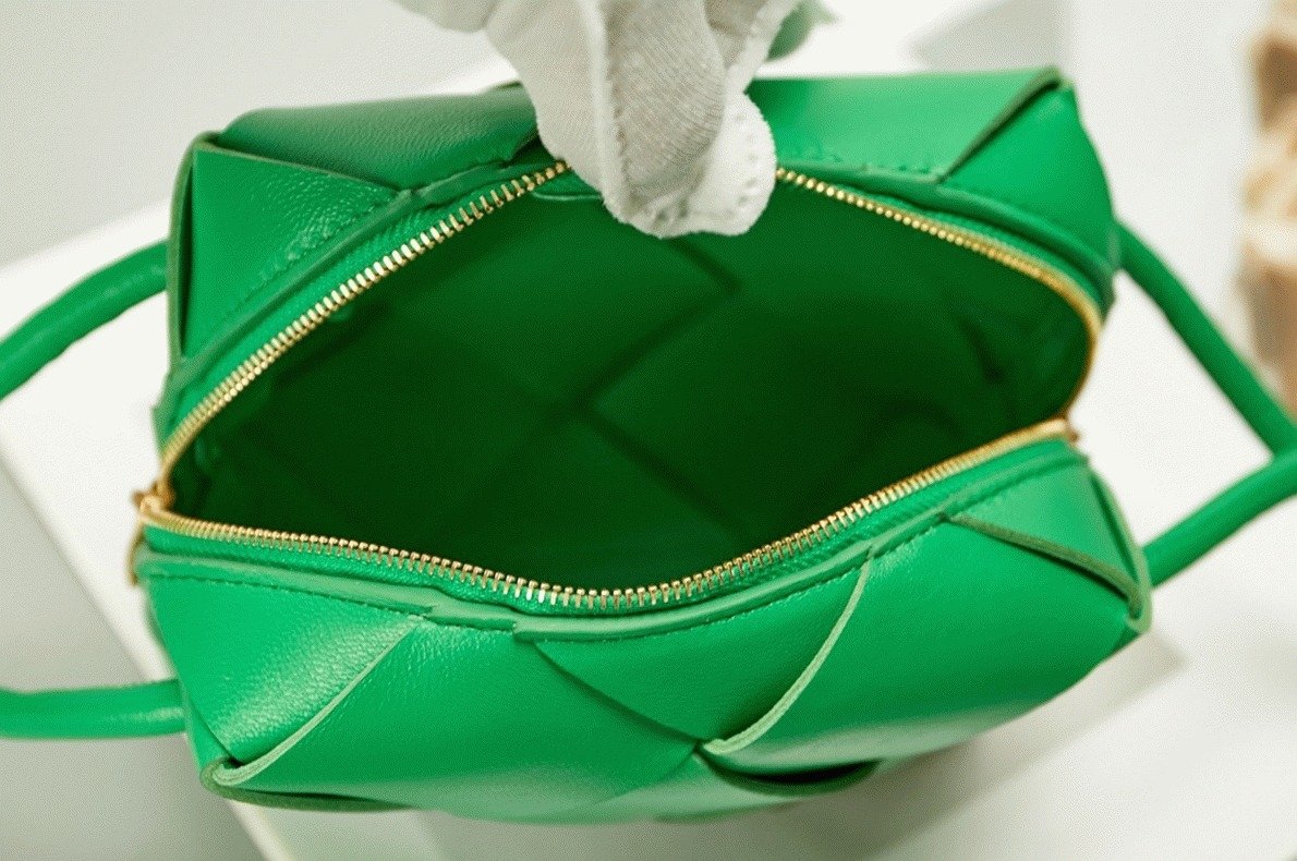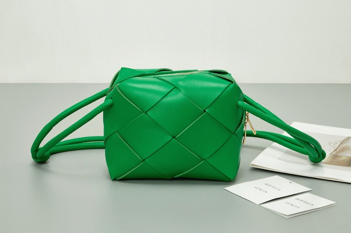 The Mini Cassette bag is subtle yet speaks volumes about the brand’s roots, with its Intrecciato woven design taking center stage rather than any logos or labels. Its beauty lies not just in the striking color palette but in the compact size and detailed craftsmanship of the weave.