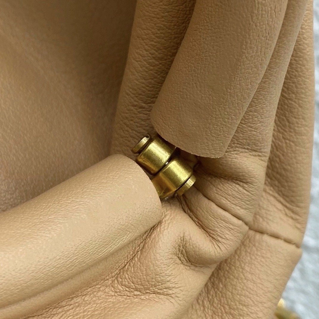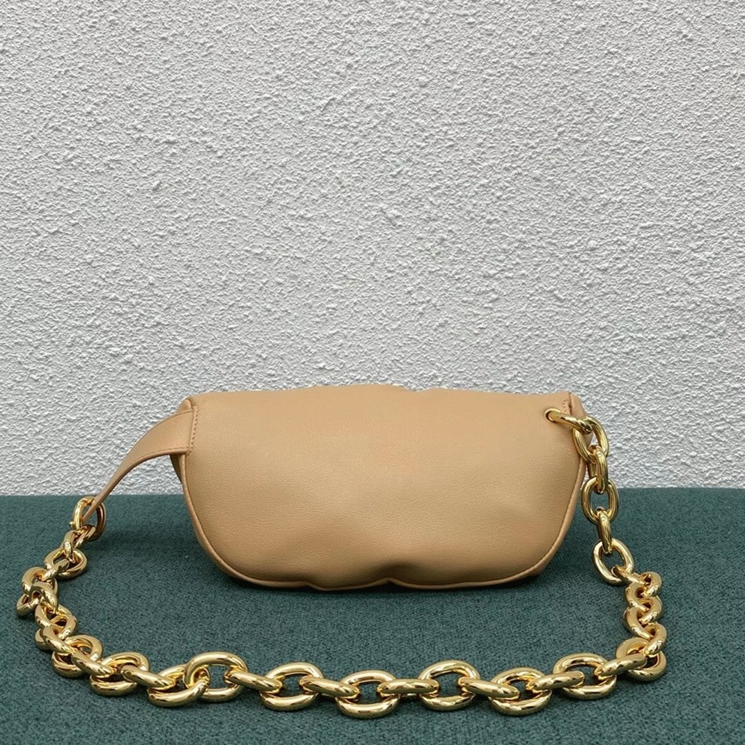 The Pouch clutch was Daniel Lee’s first design for Bottega Veneta, translating the brand’s iconic cloud-like shape into a more practical, hands-free style. This bum bag is made from nappa leather and wraps around the waist with a gold-tone chain. The top features a ruched frame that opens with a hinge for easy access.