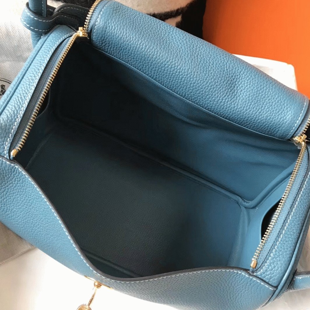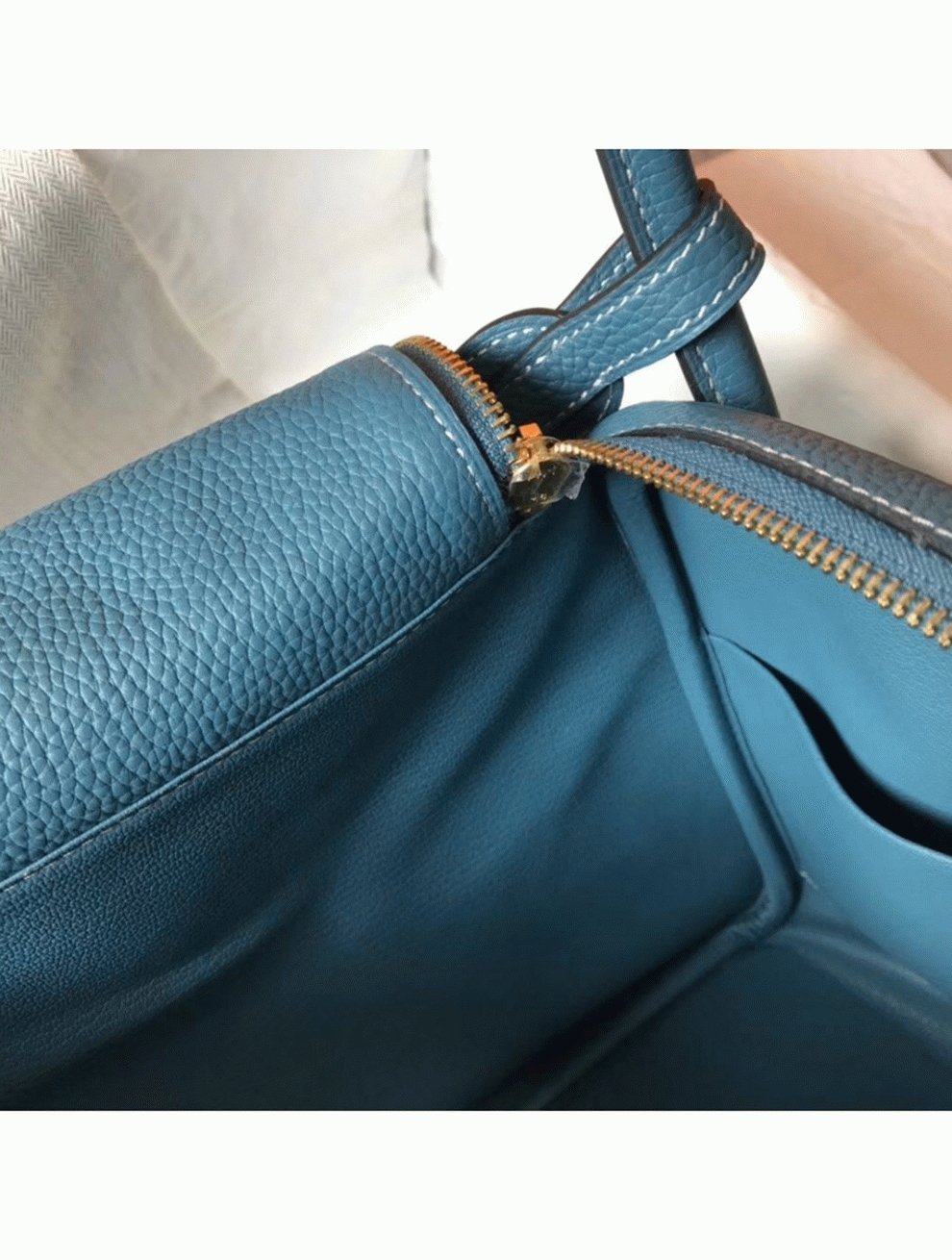 Fake Hermes Lindy 30cm bag in blue jean tone