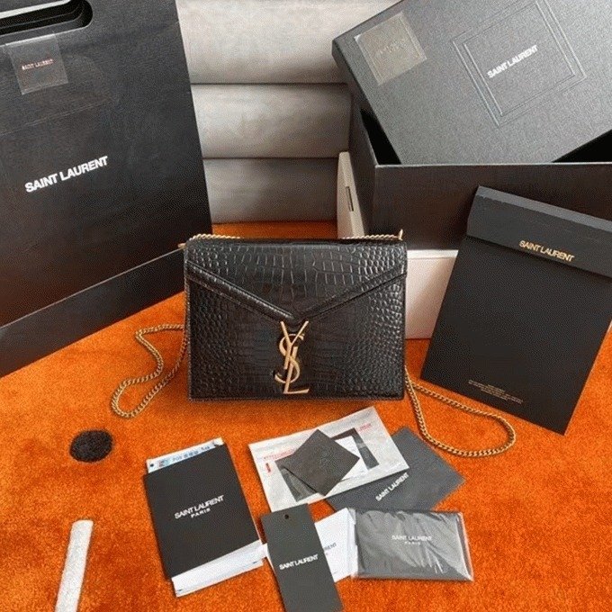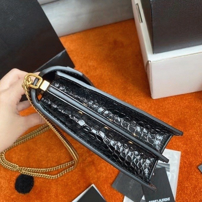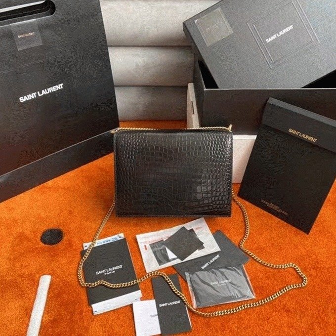 Fake Saint Laurent Cassandra Medium Bag Black Crocodile