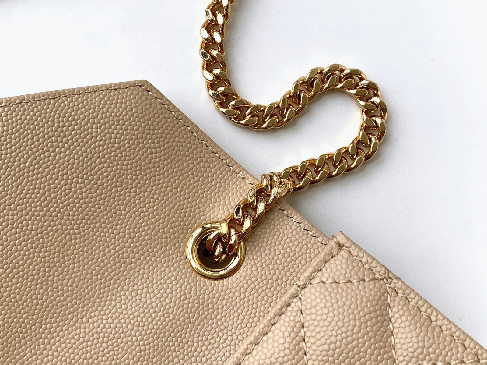 Saint Laurent’s Envelope Bag is a contemporary classic, instantly recognizable with its iconic YSL logo and matelassé stitching. The adjustable chain strap offers flexibility, allowing you to wear it long or short, making it a versatile piece for any occasion.