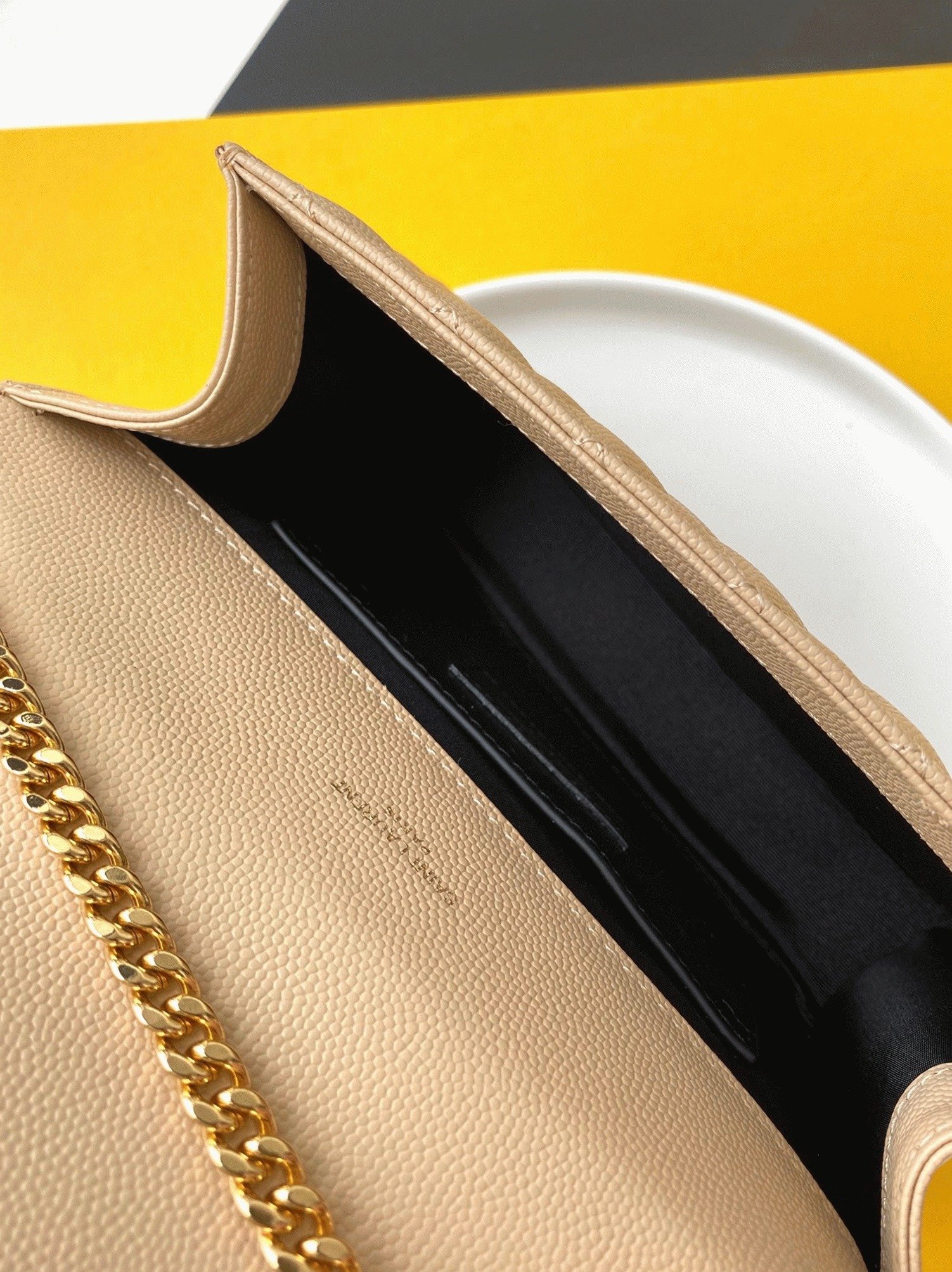 Front flap adorned with YSL initials in metal