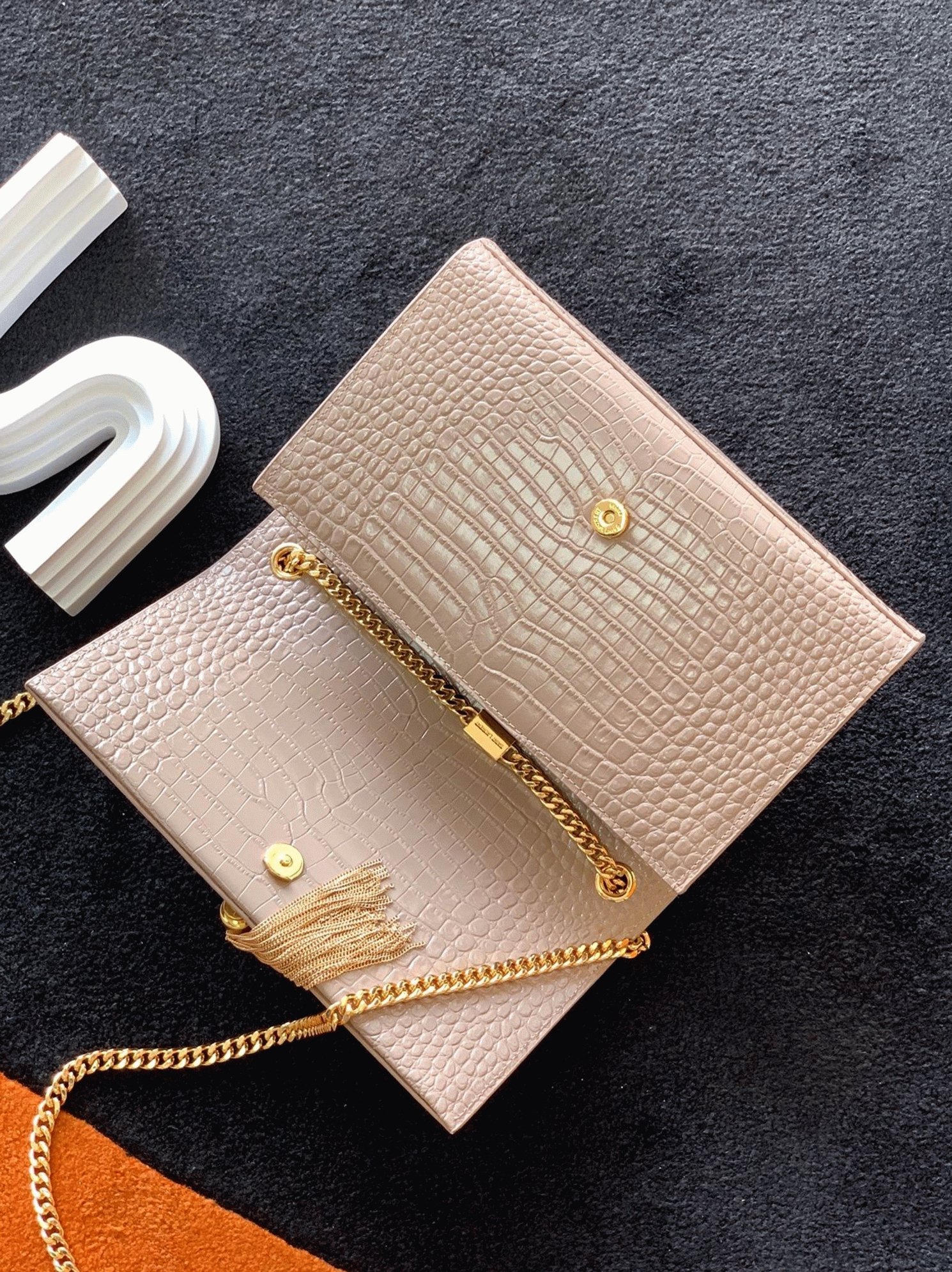 Flap adorned with YSL initials and chain tassel