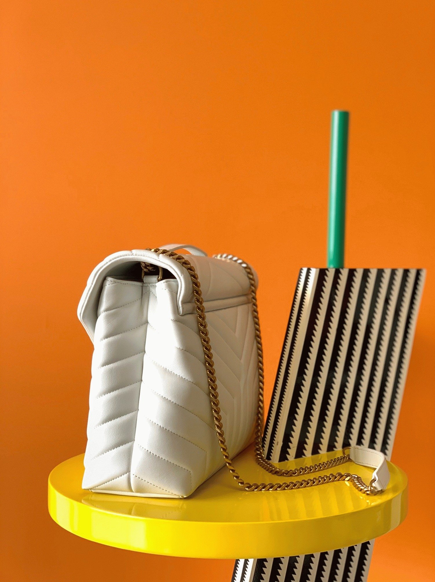 Fake Saint Laurent LouLou Medium Chain Bag White