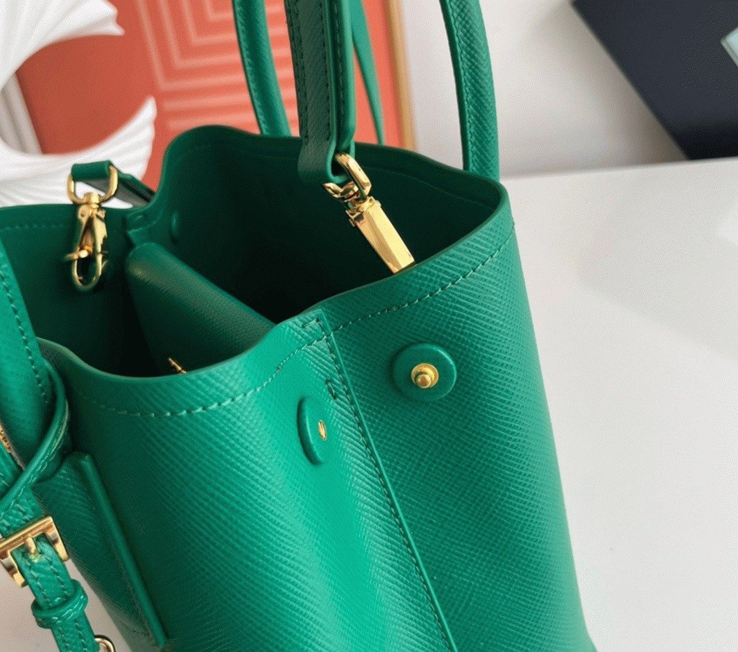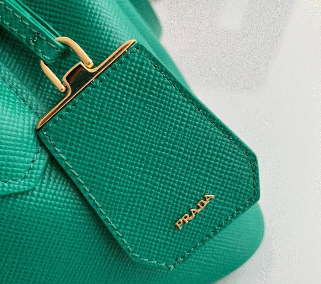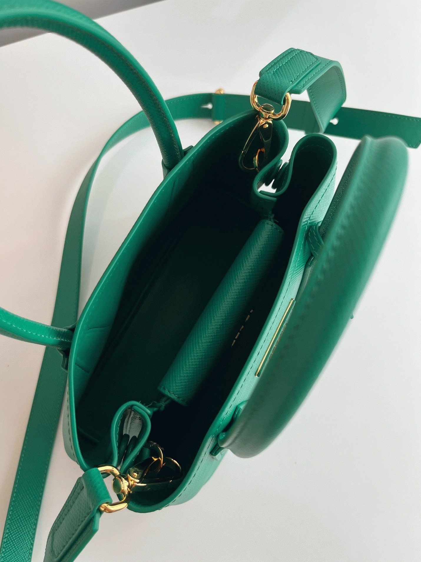 The Prada Double bag is reimagined with refined and subtle details, now available in a chic and compact mini version. A matching leather triangle frames the iconic metal logo on the front, while the detachable and adjustable shoulder strap offers versatility to wear the bag over the shoulder or as a crossbody.