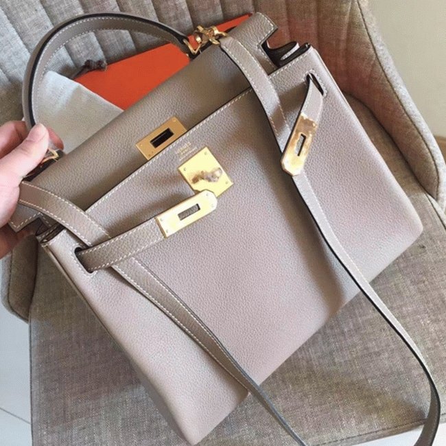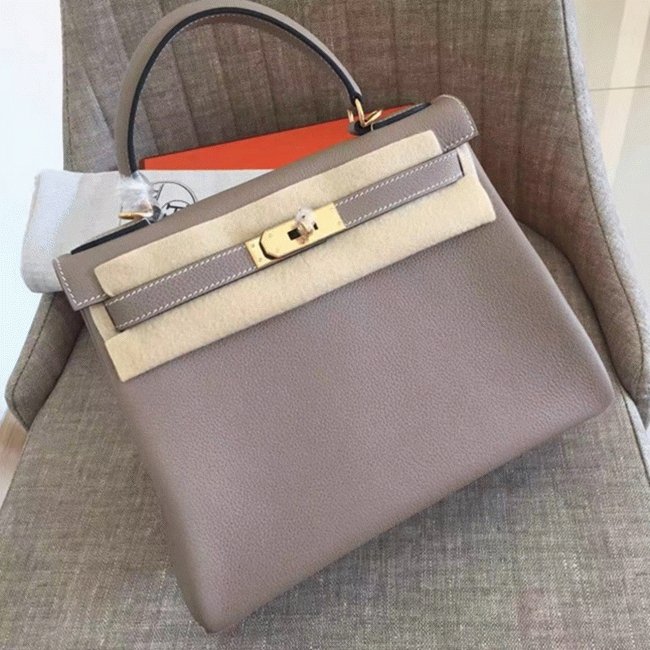 Grey Clemence Replica Designer Hermes Kelly Retourne 28cm Elegant Tote