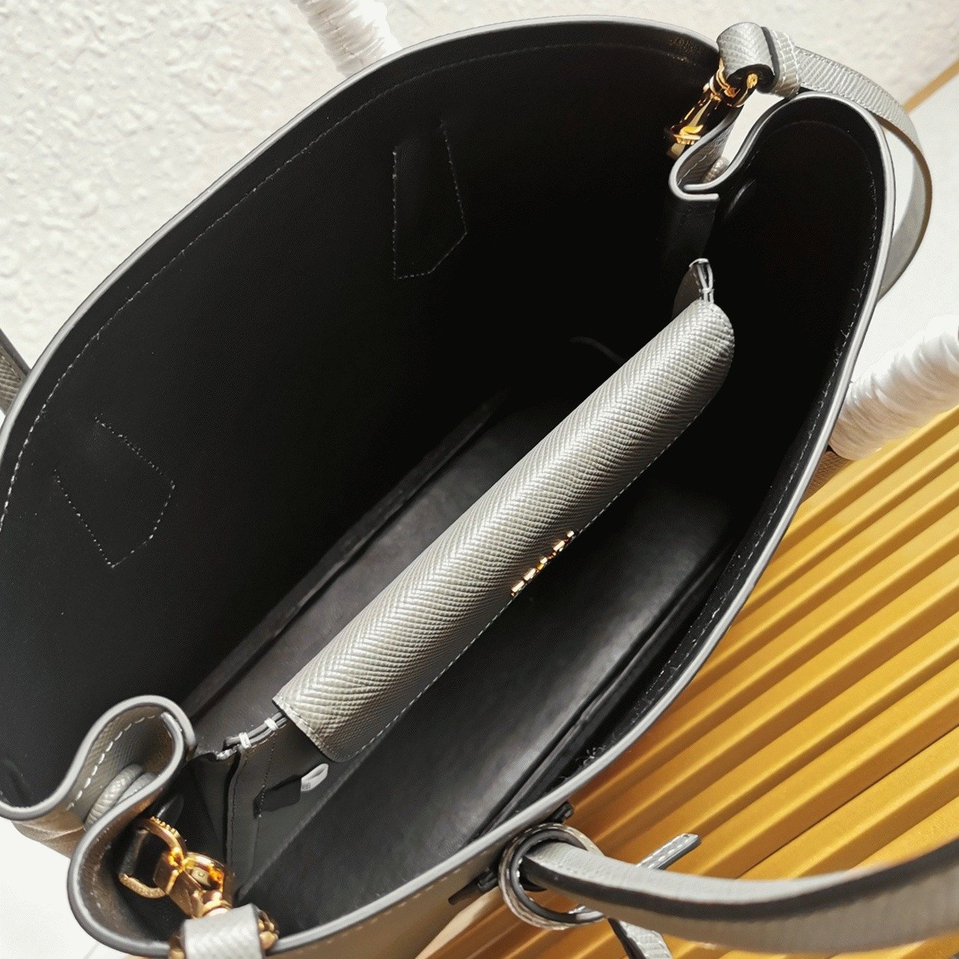 Interior lined with Nappa leather, including a central flap pocket