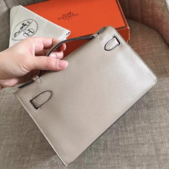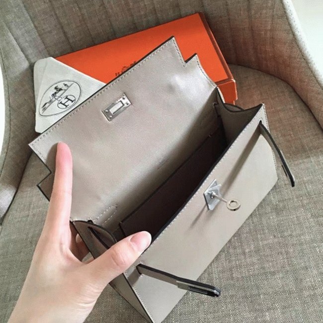 Hermes Grey Swift Top Replica Designer Kelly Pochette Soft Purse