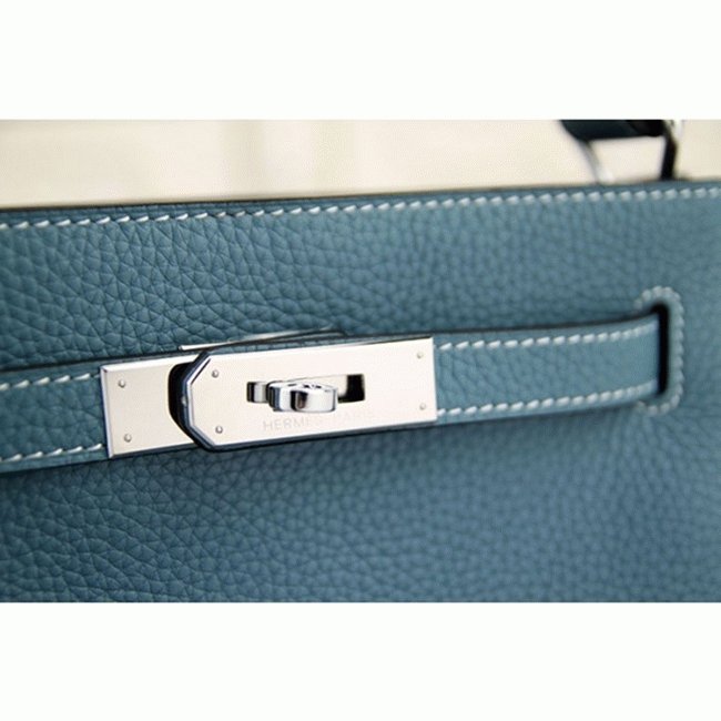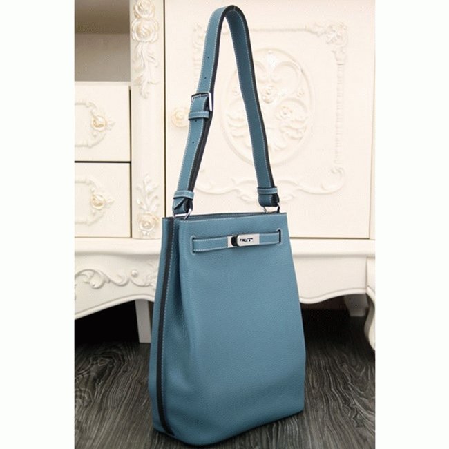 Jean Blue Leather Fake Hermes So Kelly 22cm Casual Handbag