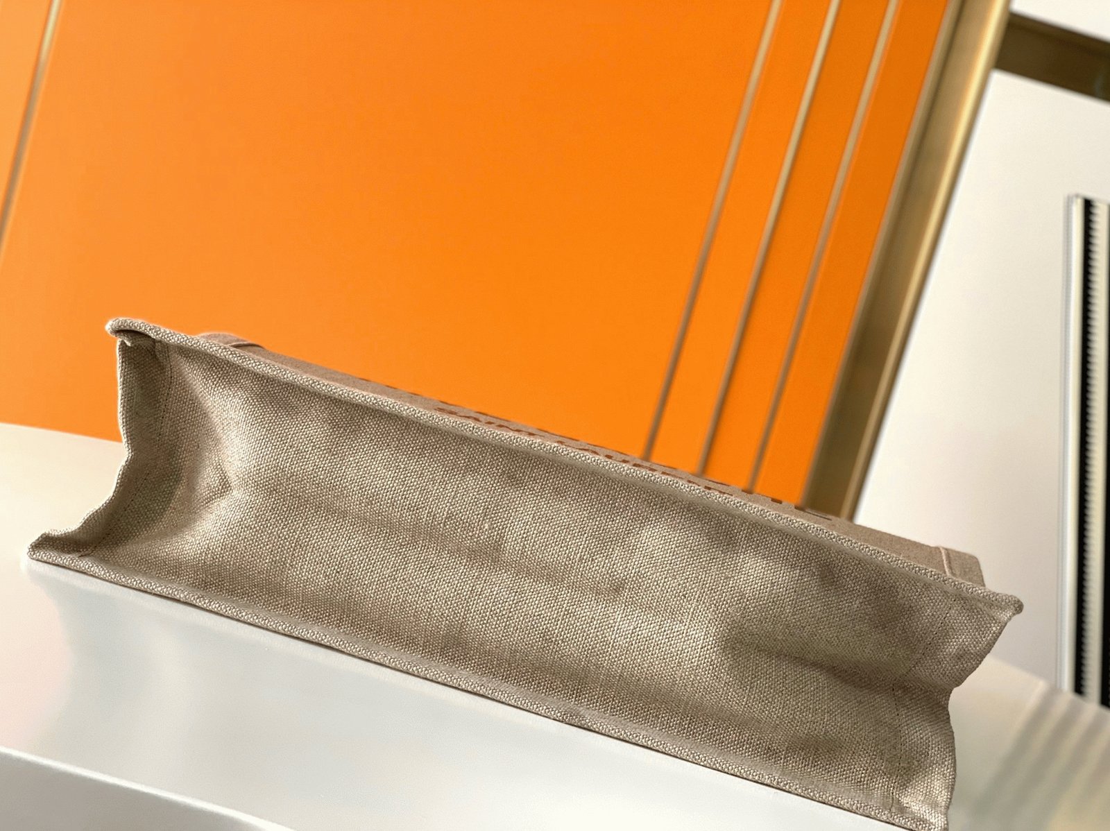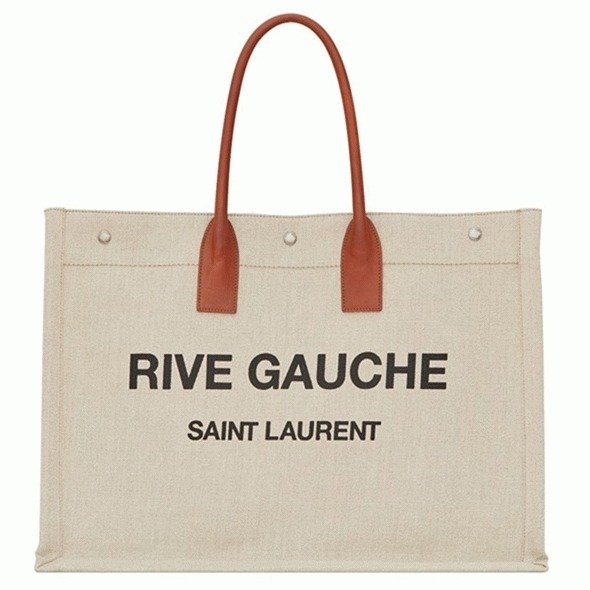 Knockoff Saint Laurent Rive Gauche Tote Bag White Linen and Brown Leather