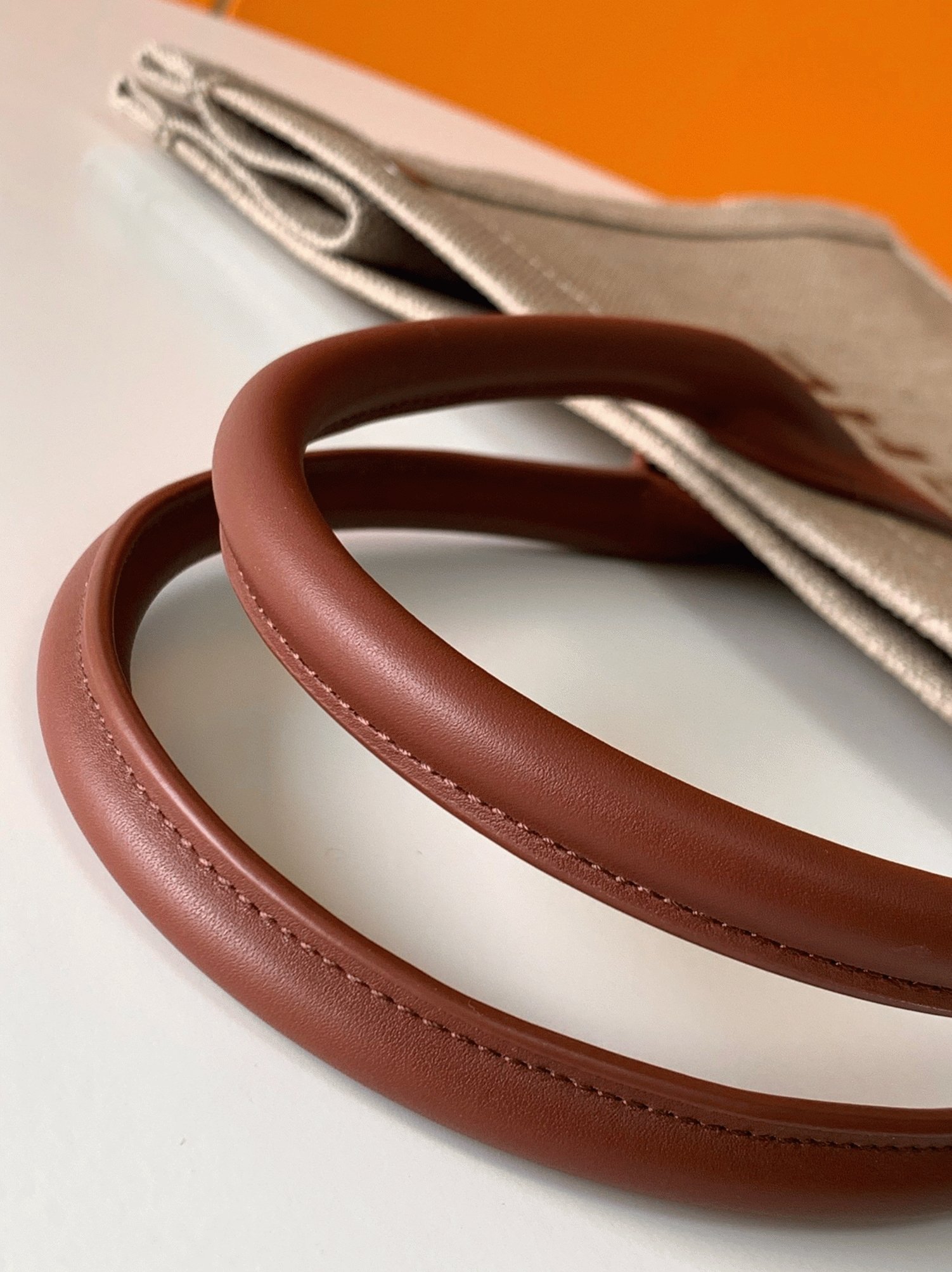 Double leather handles with a 17 cm drop
