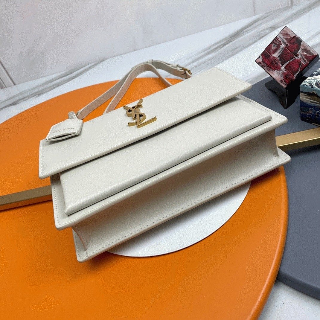 Knockoff Saint Laurent Sunset Medium Top Handle Bag White Calfskin