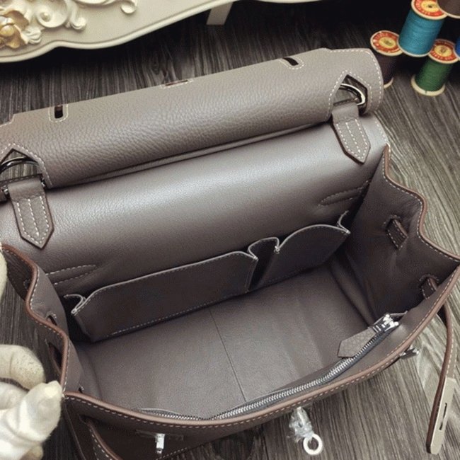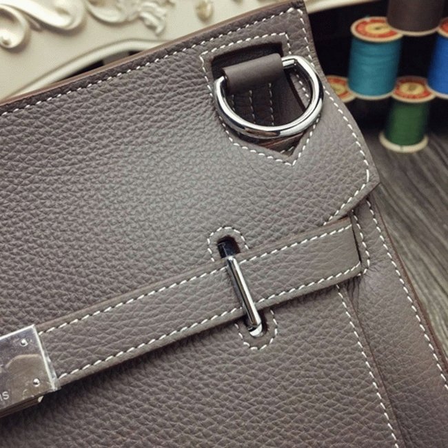Large grey knockoff Hermes Jypsiere 31cm handbag