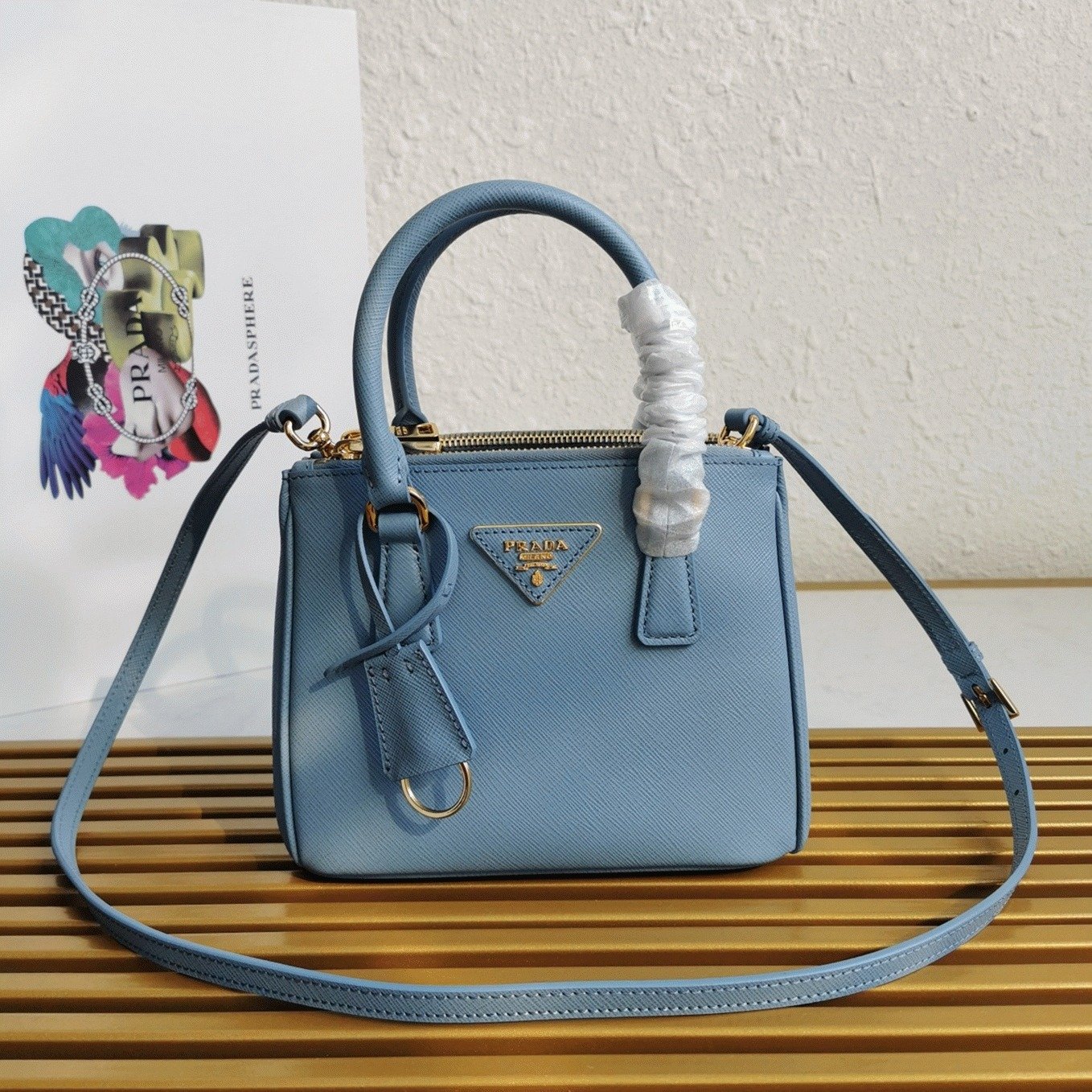 The Prada Galleria bag, assembled from 83 individual components, showcases a blend of industrial precision and meticulous handcrafting. Its design is elegant yet highly functional, representing a perfect balance of form and utility, combining traditional heritage with modern styling. Recognized as a symbol of timelessness, the Galleria bag embodies Pradas signature identity in the 21st century. The mini version is crafted from the brands iconic Saffiano leather, patented by the founder, which features a distinctive crosshatch texture and waxed finish.