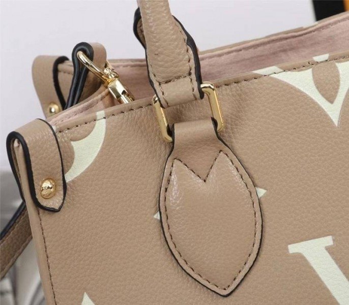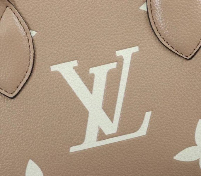 Louis Vuitton Bicolor Monogram Empreinte Leather Onthego PM Bag In Tourterelle Gray And Cream